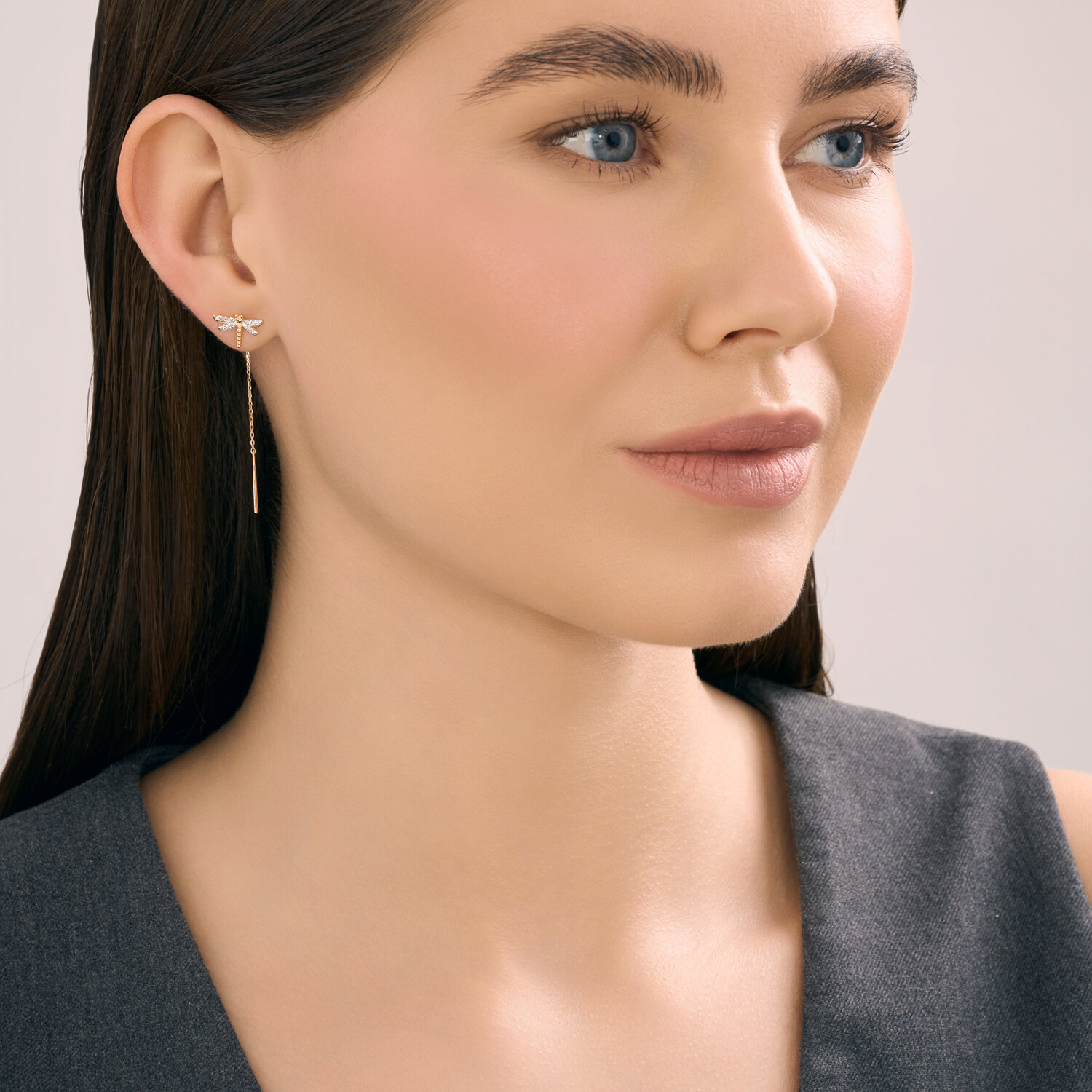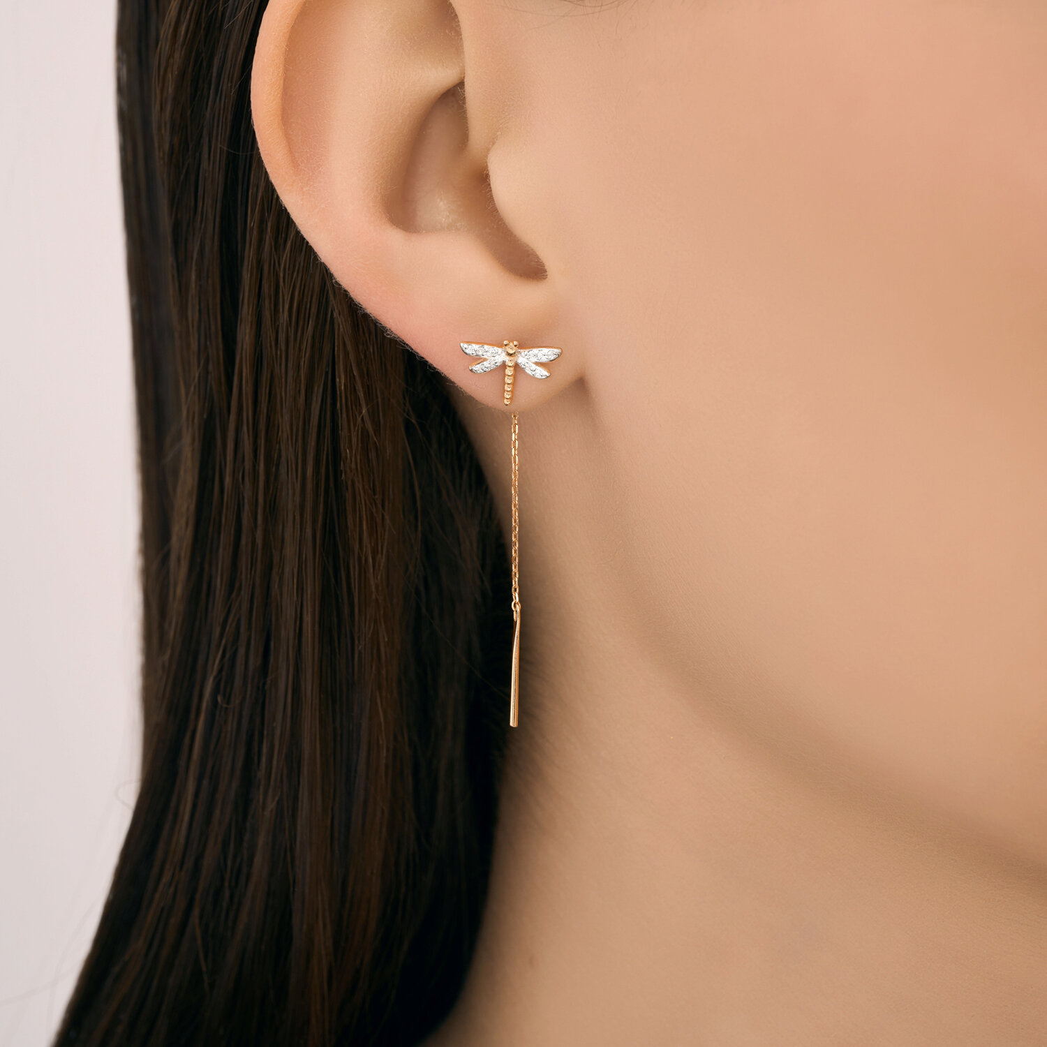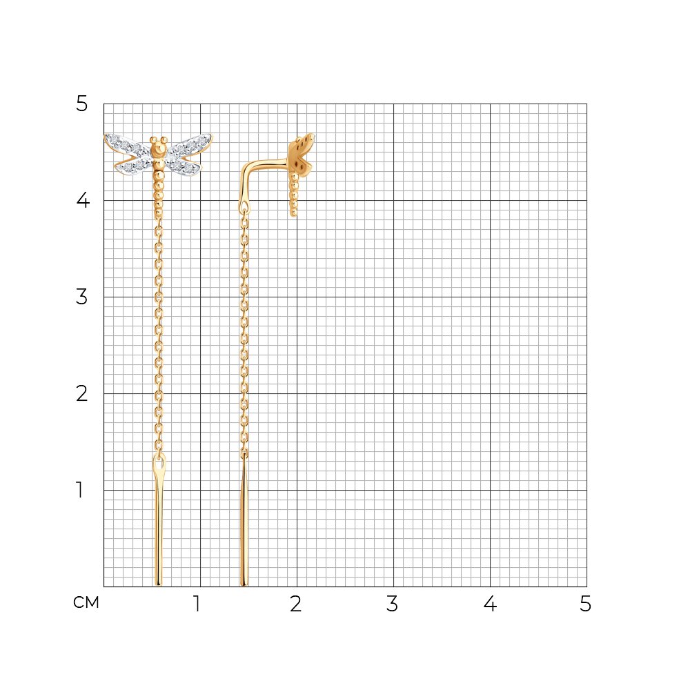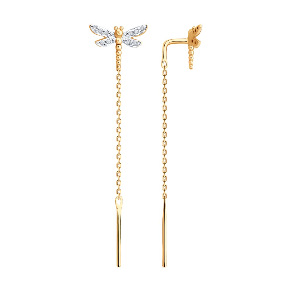 Серьги продевки из золота 585 пробы с бриллиантами