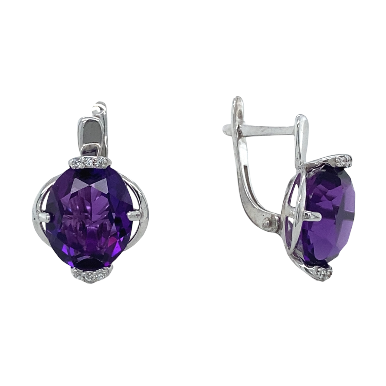 Серьги из серебра 925 пробы с аметистами и фианитами
