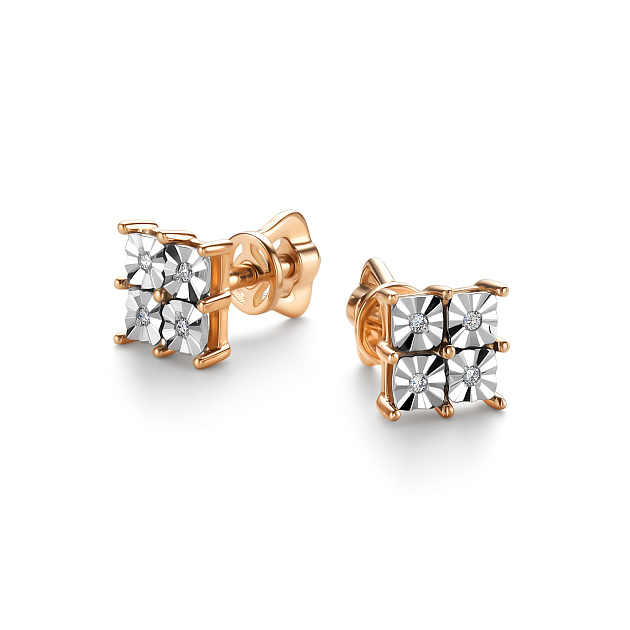 Серьги пусеты из золота 585 пробы с бриллиантами