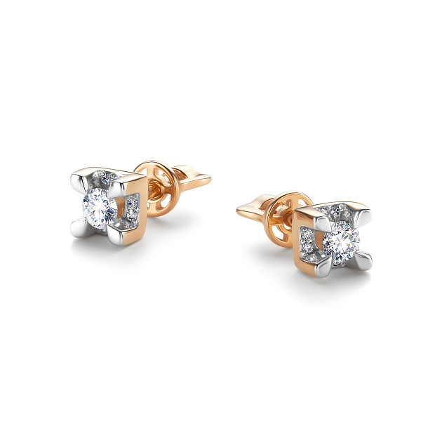 Серьги пусеты из золота 585 пробы с бриллиантами