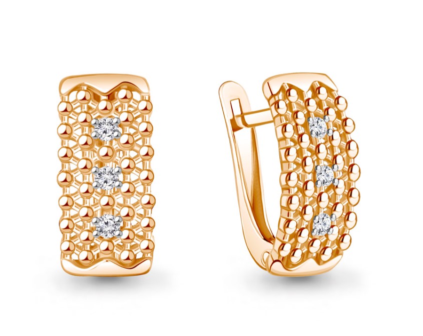 Серьги из серебра 925 пробы с позолотой, сфианитами