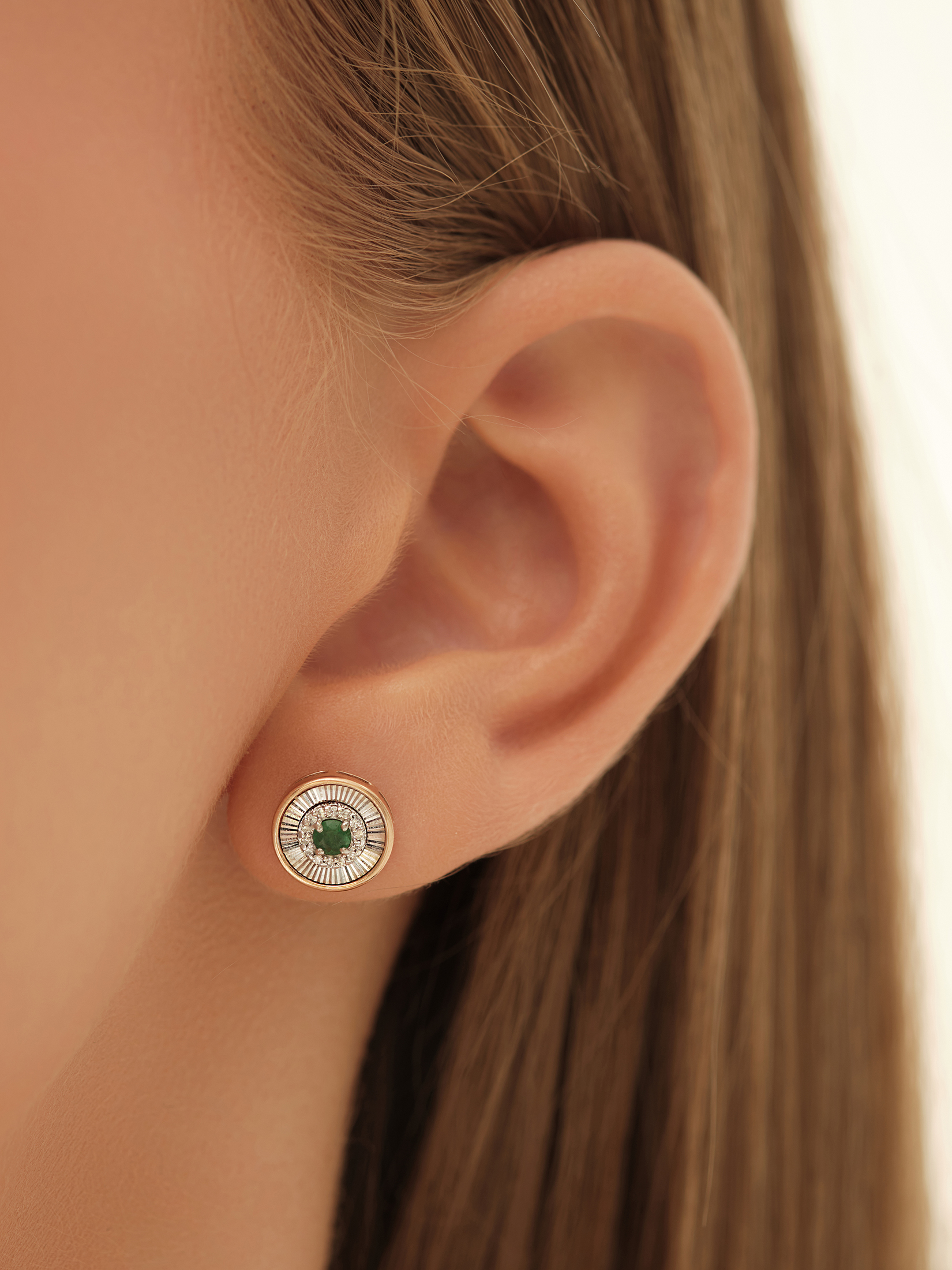 Серьги пусеты из золота 585 пробы с изумрудами и бриллиантами