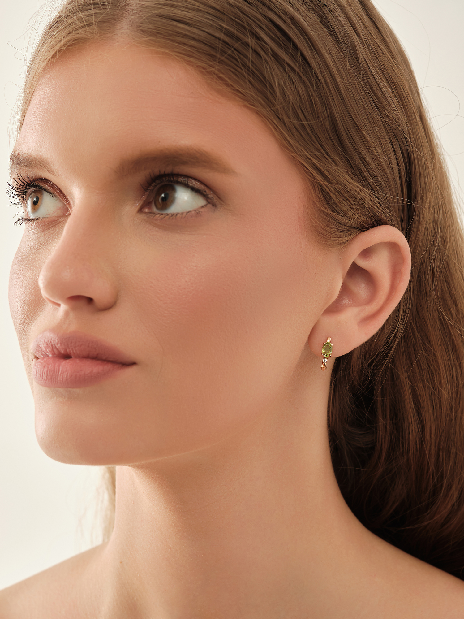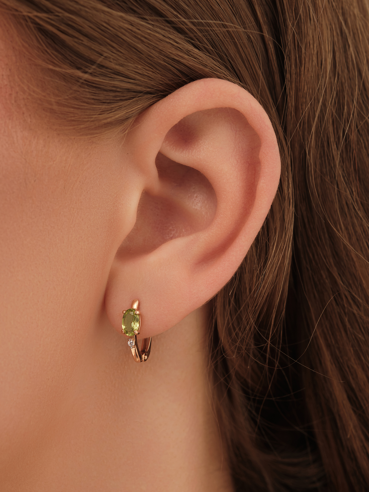 Серьги из золота 585 пробы с хризолитами и фианитами