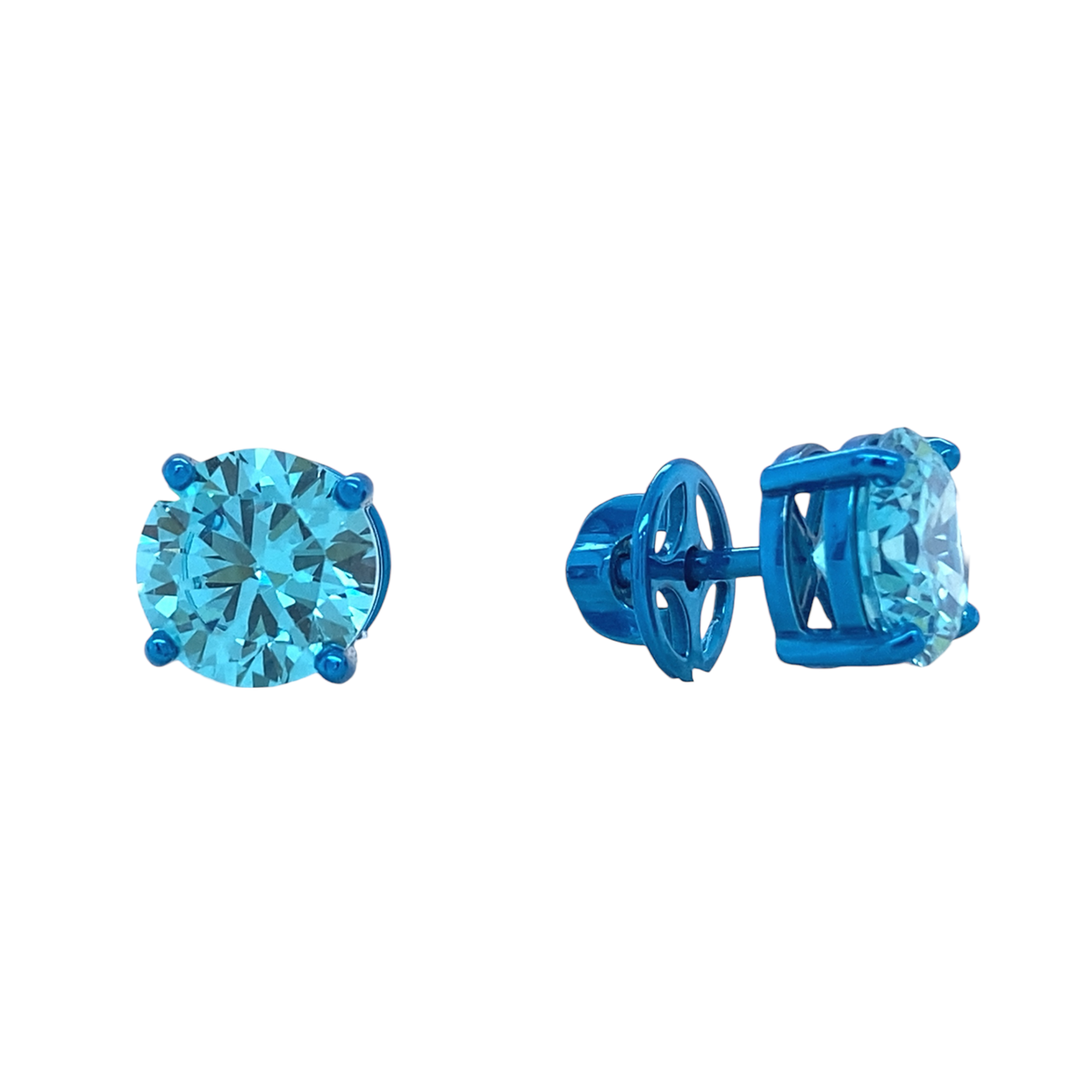Серьги пусеты из серебра 925 пробы с цветными фианитами