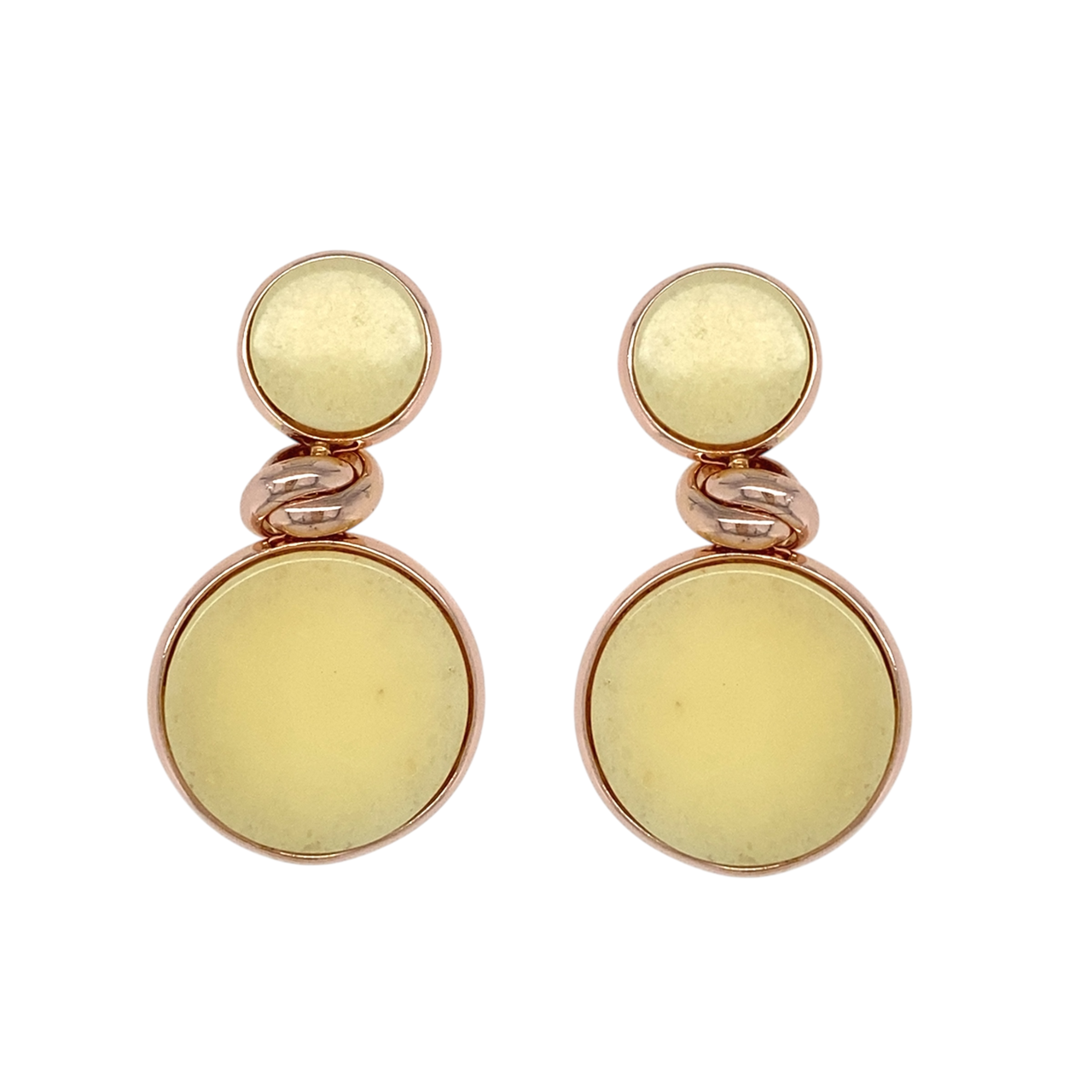 Пусеты из серебра 925 пробы с позолотой и с белым янтарем