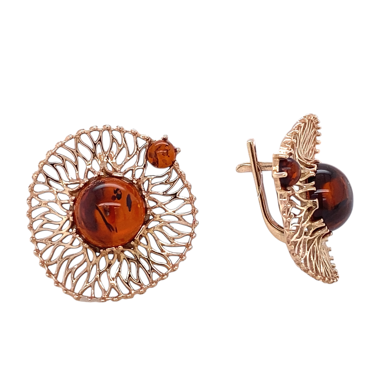 Серьги из серебра 925 пробы с позолотой, с янтарем