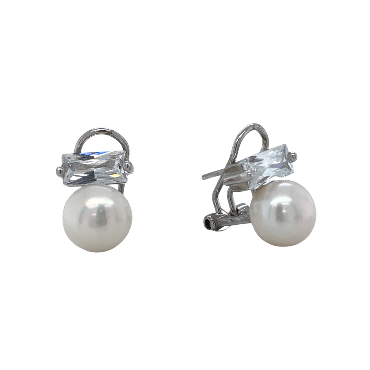 Серьги из серебра 925 пробы с жемчугом и фианитами