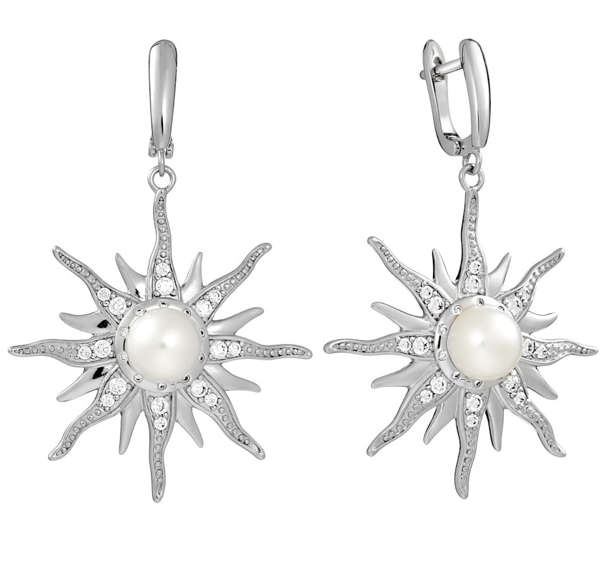 Серьги из серебра 925 пробы с жемчугом и фианитами