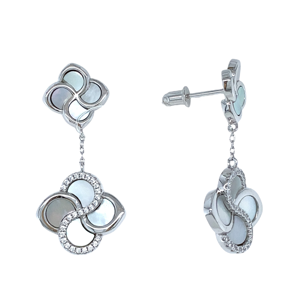 Серьги пусеты из серебра 925 пробы с перламутром и фианитами