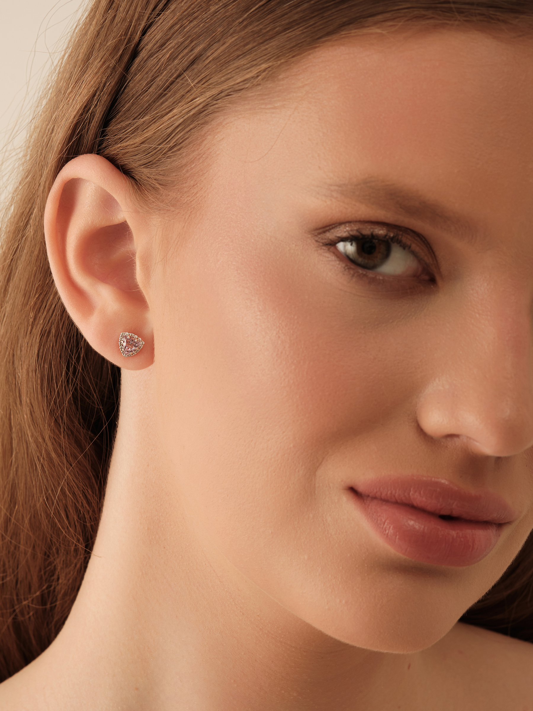 Серьги пусеты из золота 585 пробы с аметистами и фианитами