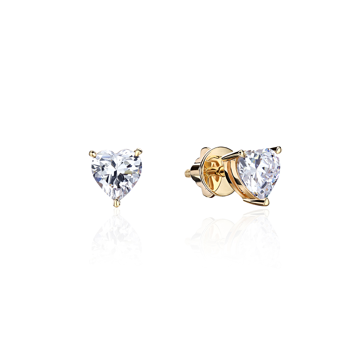 Серьги пусеты из желтого золота 585 пробы с фианитами