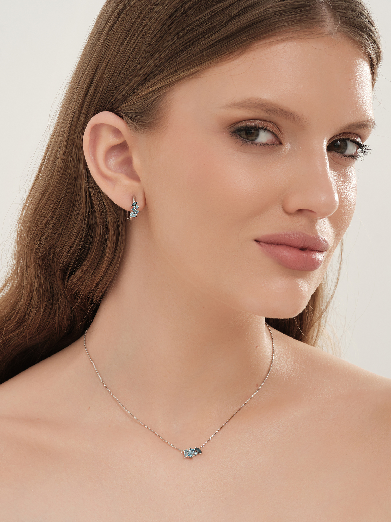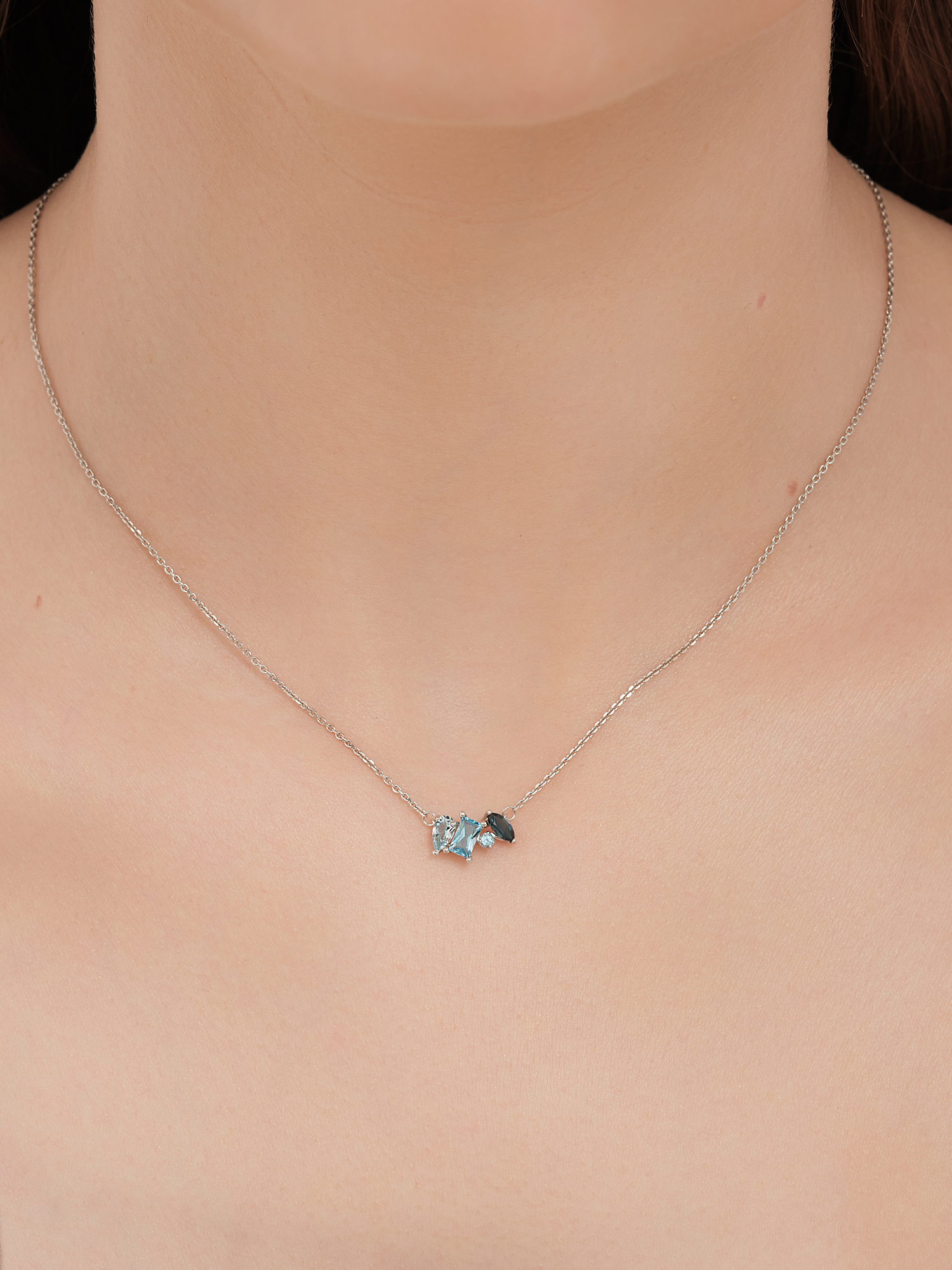 Колье из белого золота 585 пробы с топазами и топазом London Blue