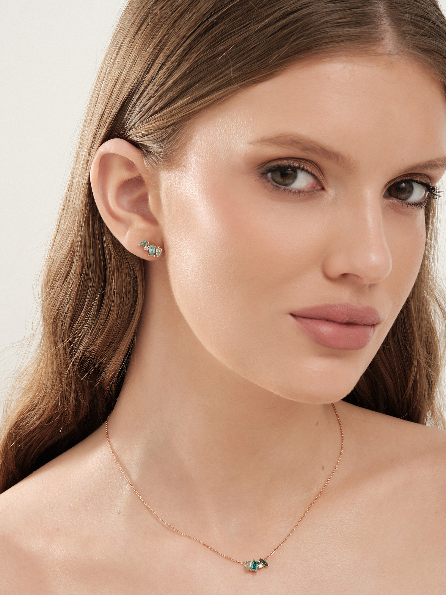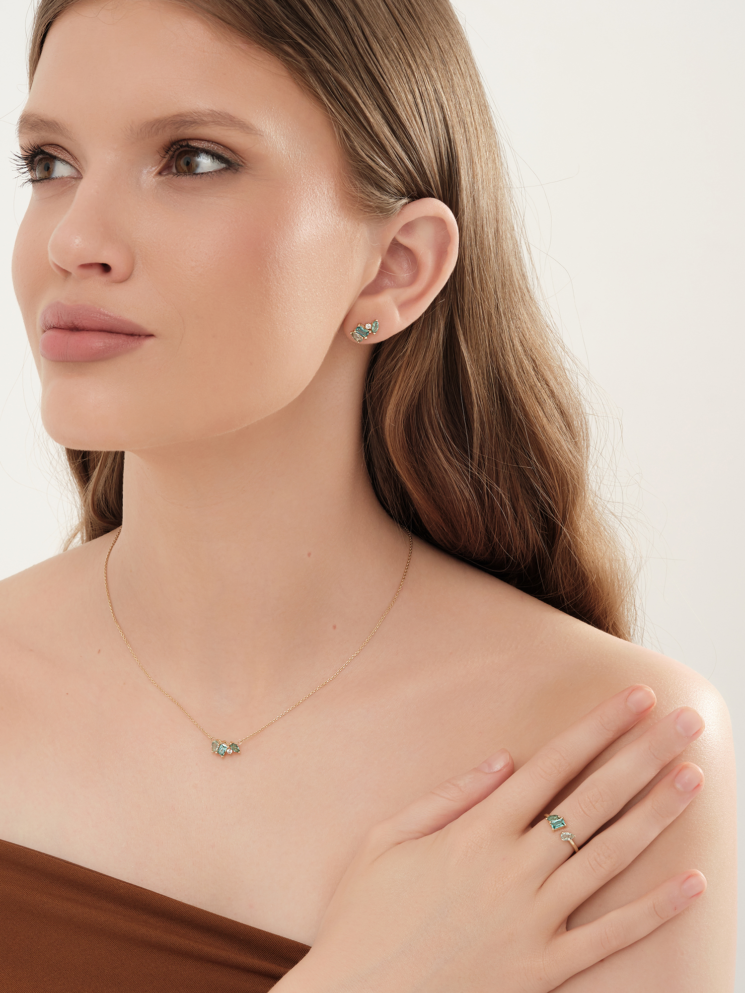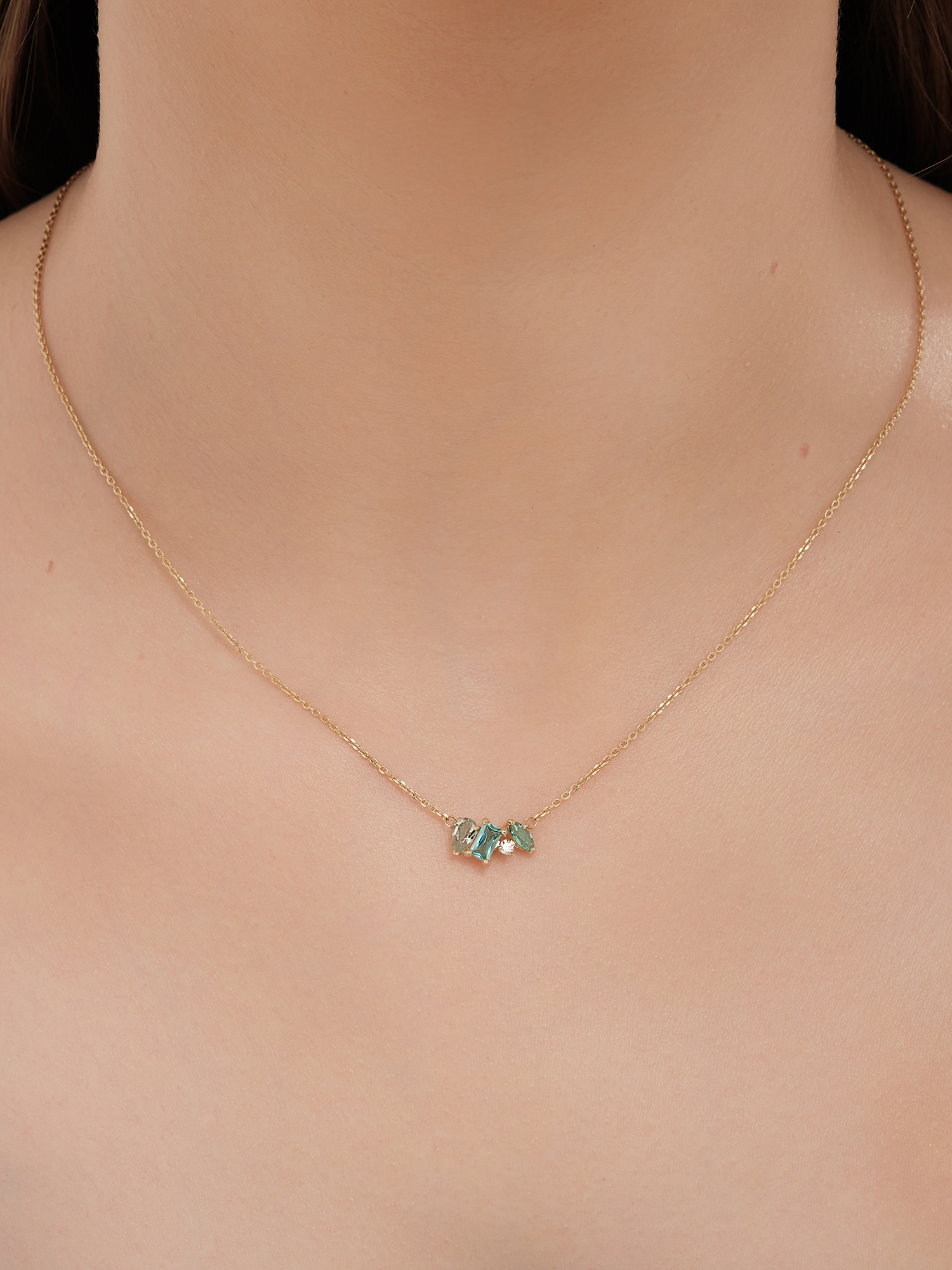 Колье (585 ж) турмалин синт., празиолит синт., фианит