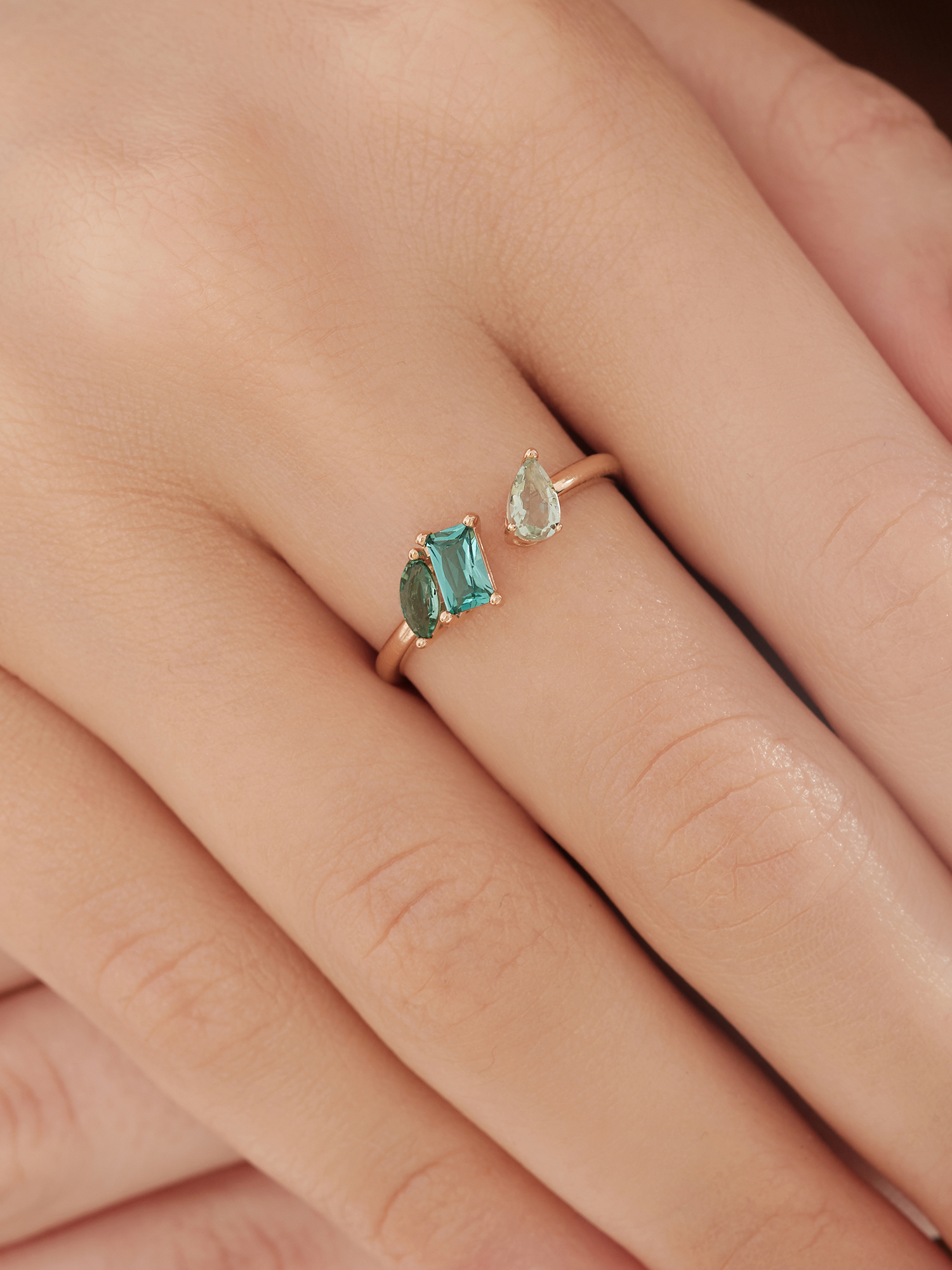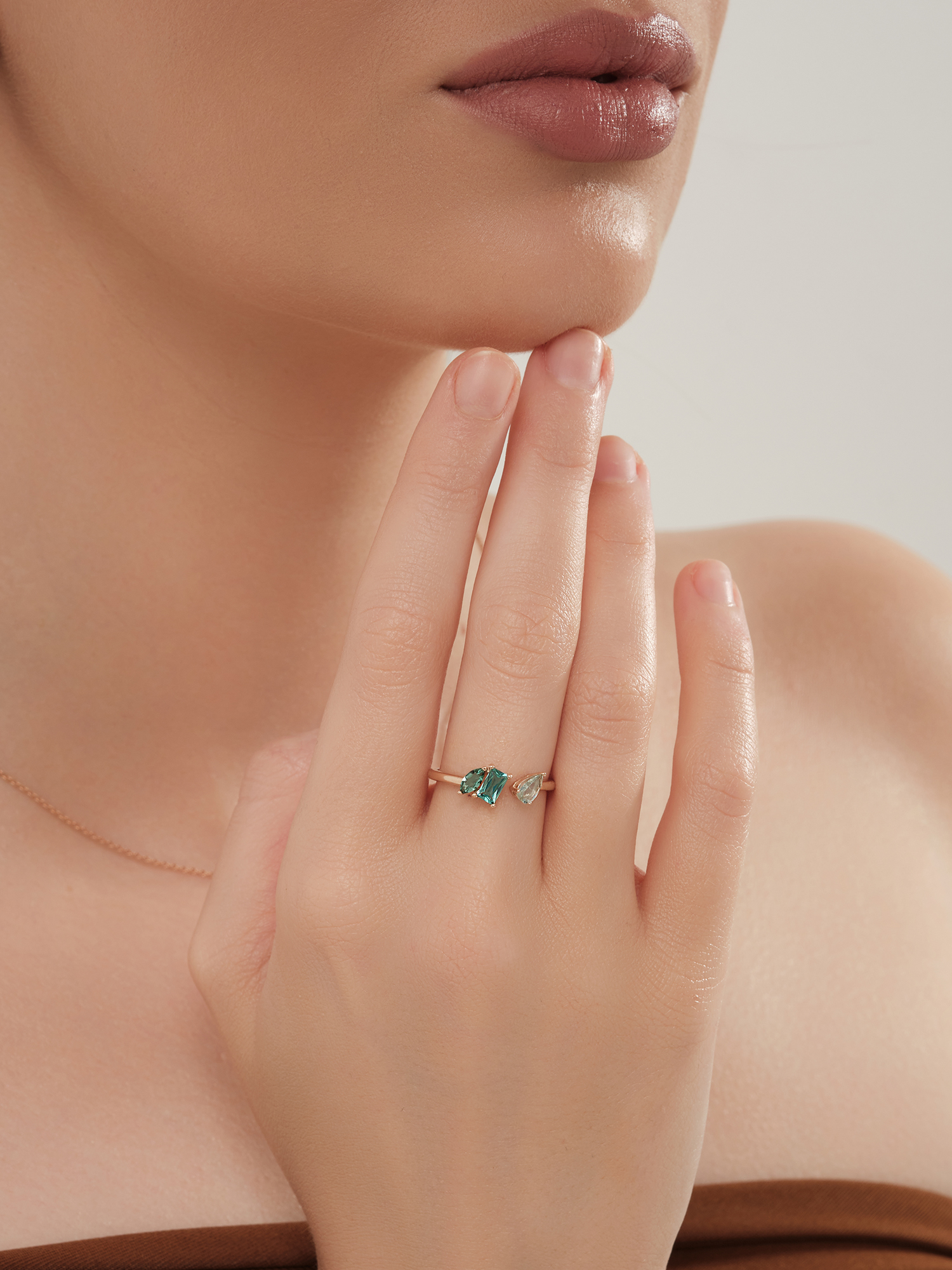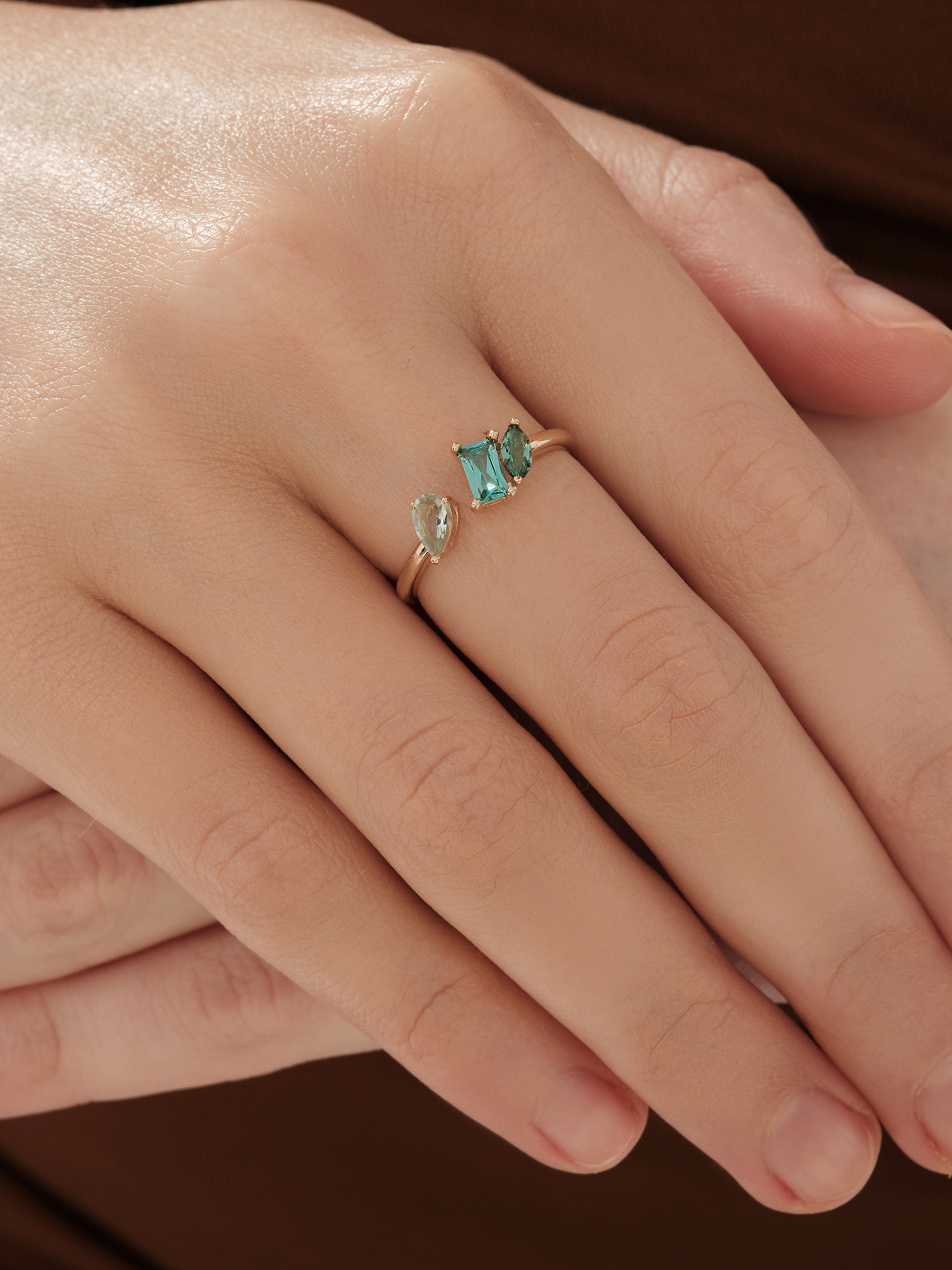 Кольцо (585) турмалин синт., празиолит синт.