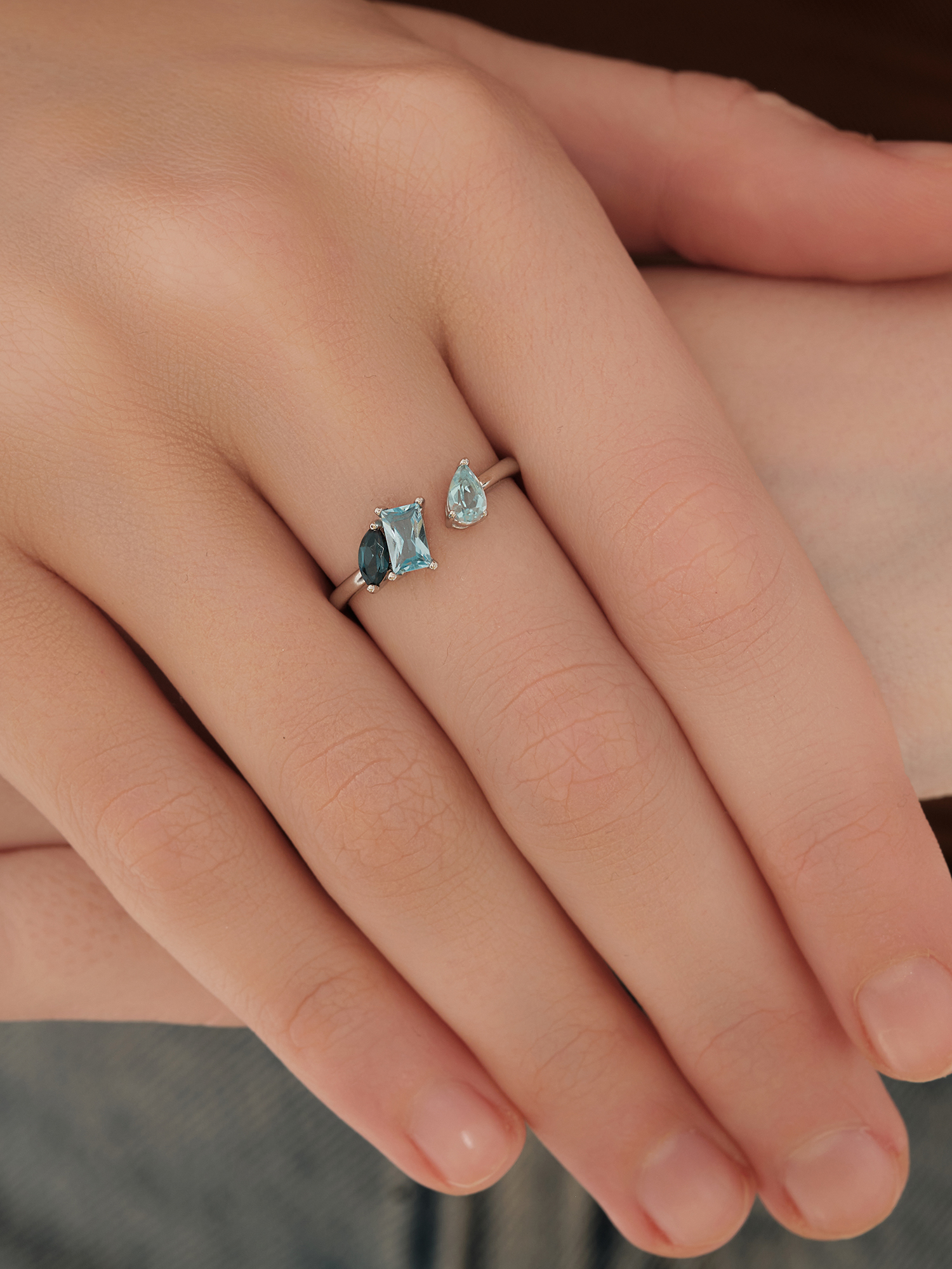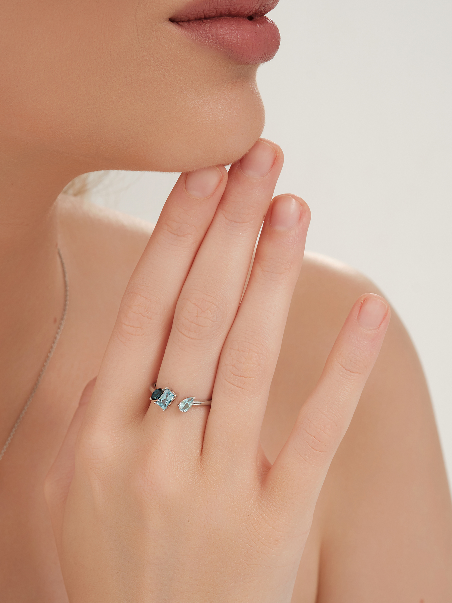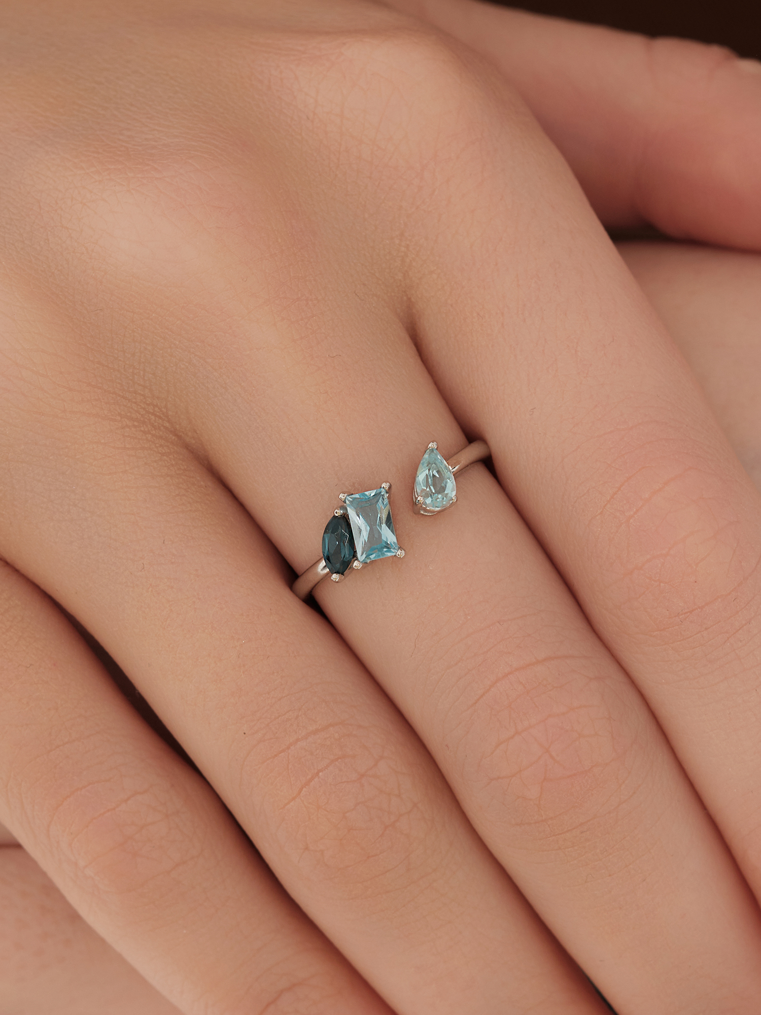 Кольцо из белого золота 585 пробы с топазами и топазами London Blue