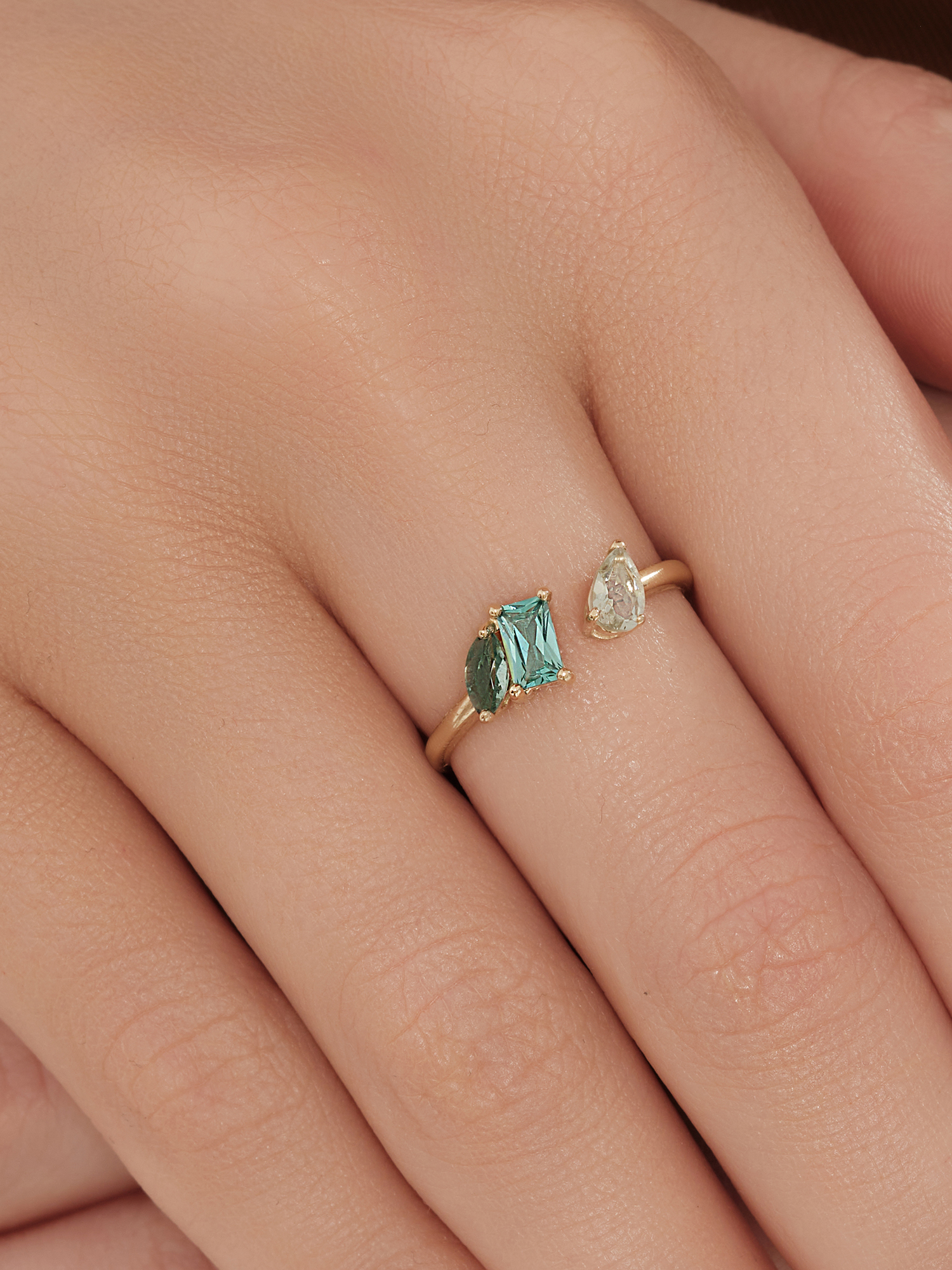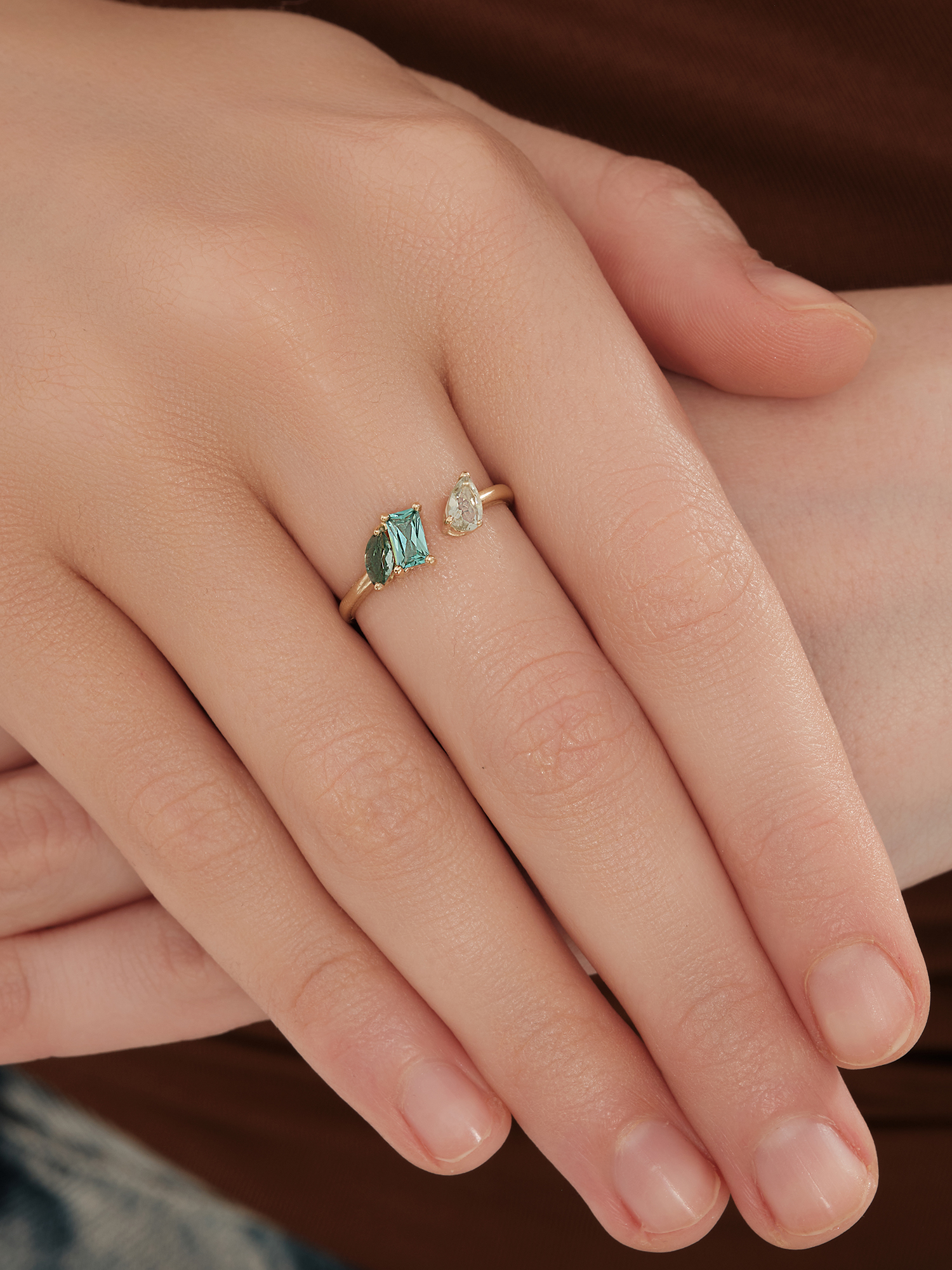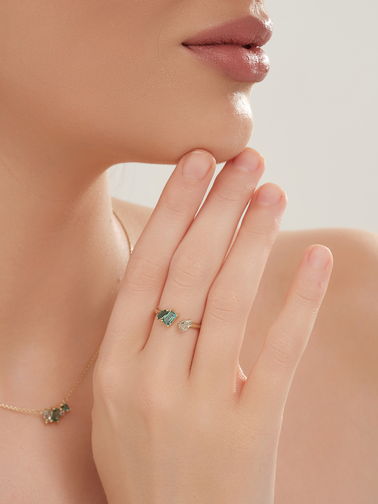 Кольцо (585 ж) турмалин синт., празиолит синт.
