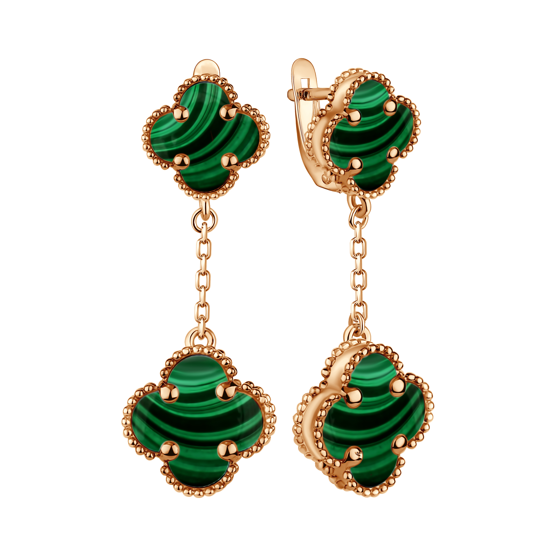 Серьги из серебра 925 пробы с позолотой, с искусственным малахитом