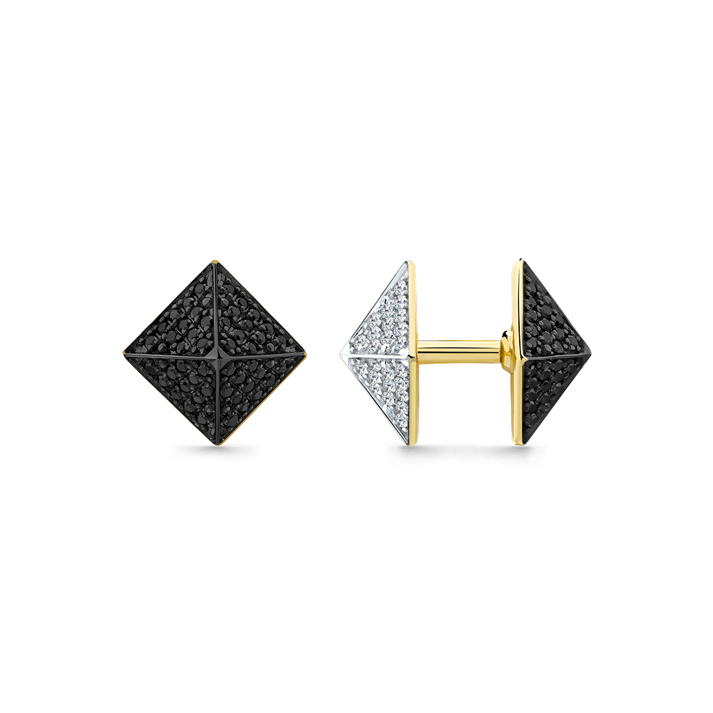 Серьги пусеты из желтого золота 585 пробы с белыми и черными бриллиантами