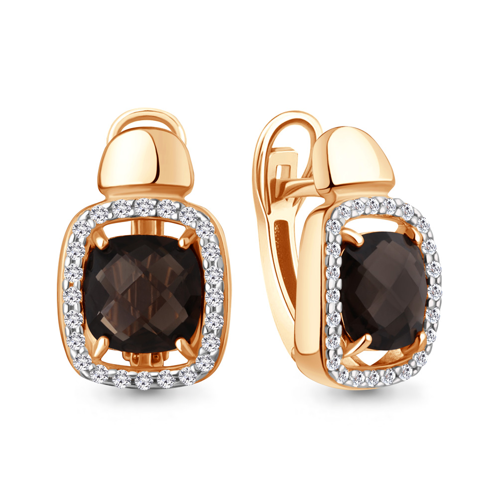 Серьги (925 п) кварц, фианит