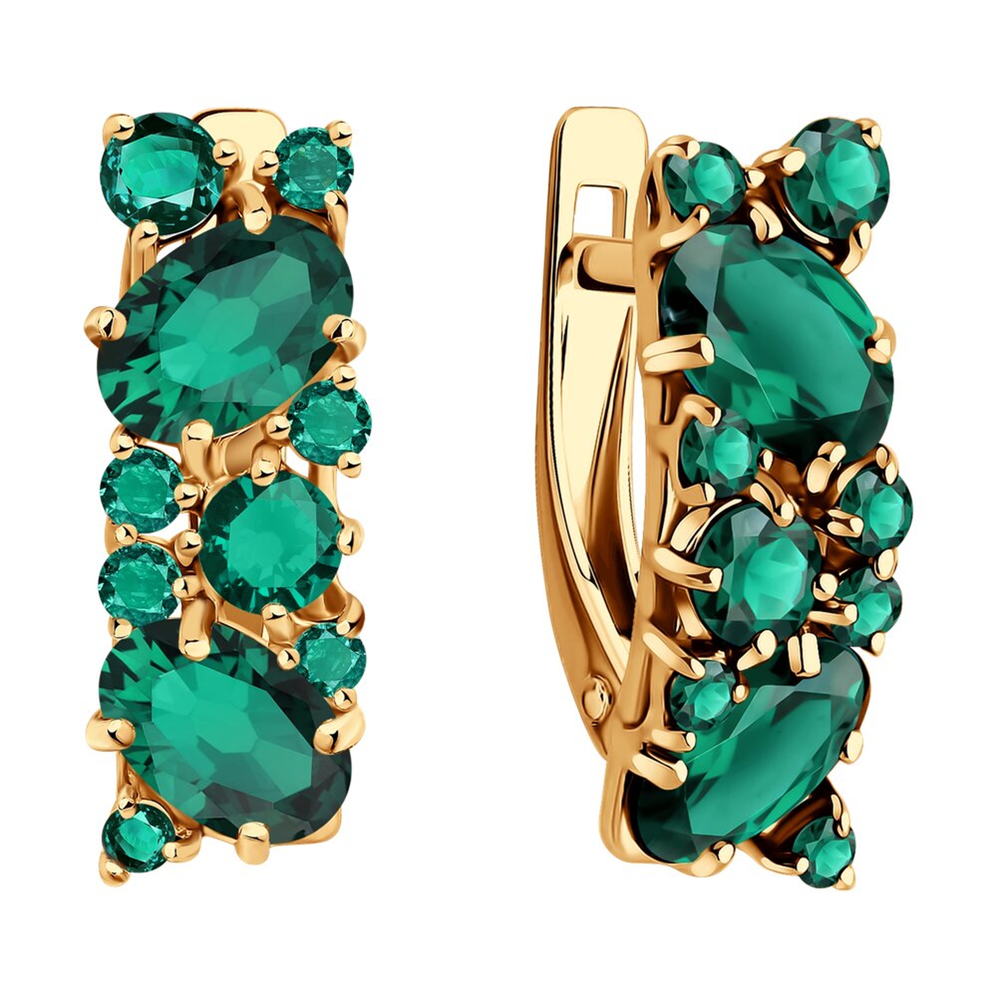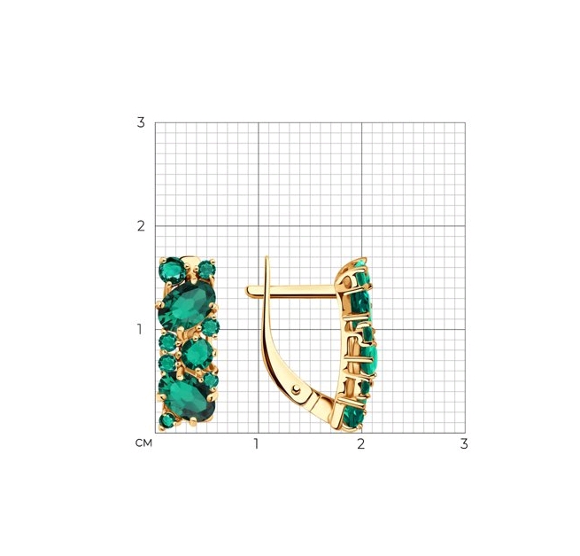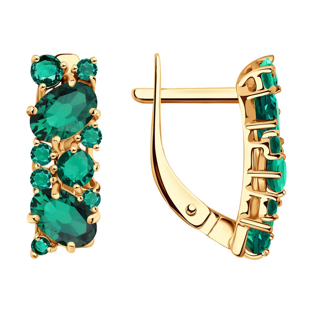 Серьги из золота 585 пробы с искусственным изумрудом