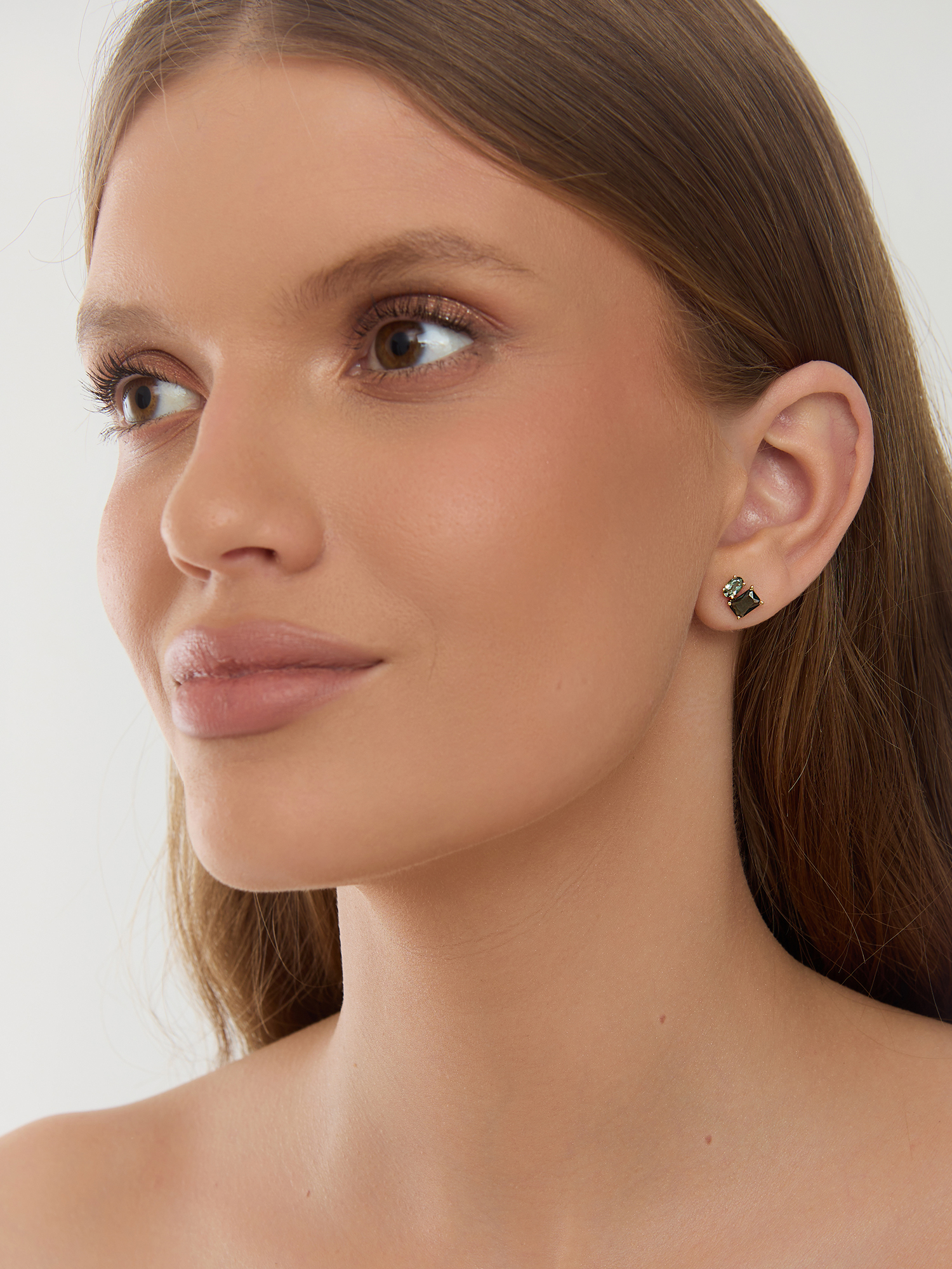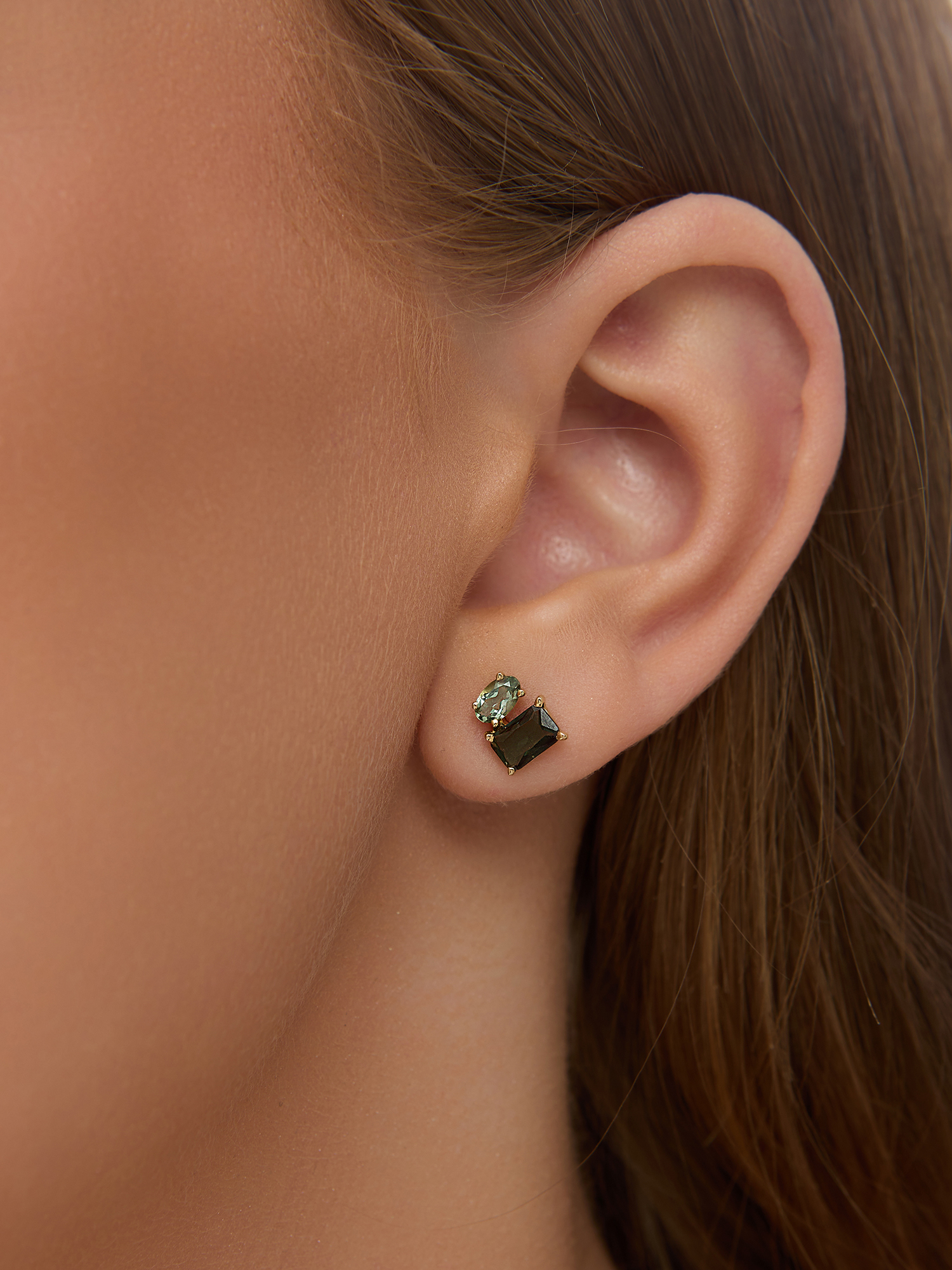 Пусеты (585 ж) аметист зеленый, турмалин ситалл