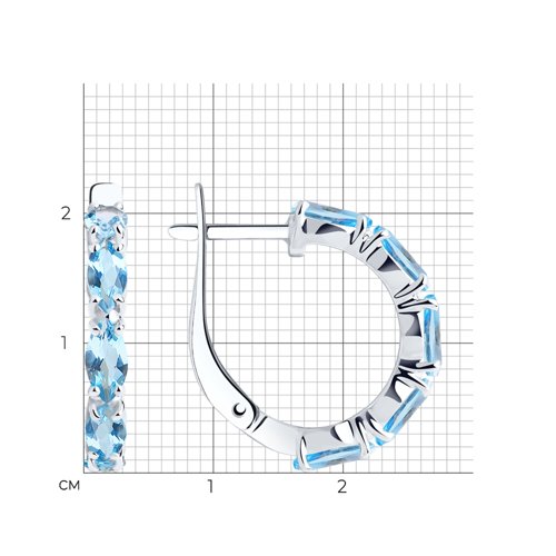 Такая форма серёг - полуколечком - популярна уже не первый сезон. Она отлично смотрится и очень удобна в носке, а яркие сияющие небесно-голубые топазы добавляют украшению женственности и неповторимости.