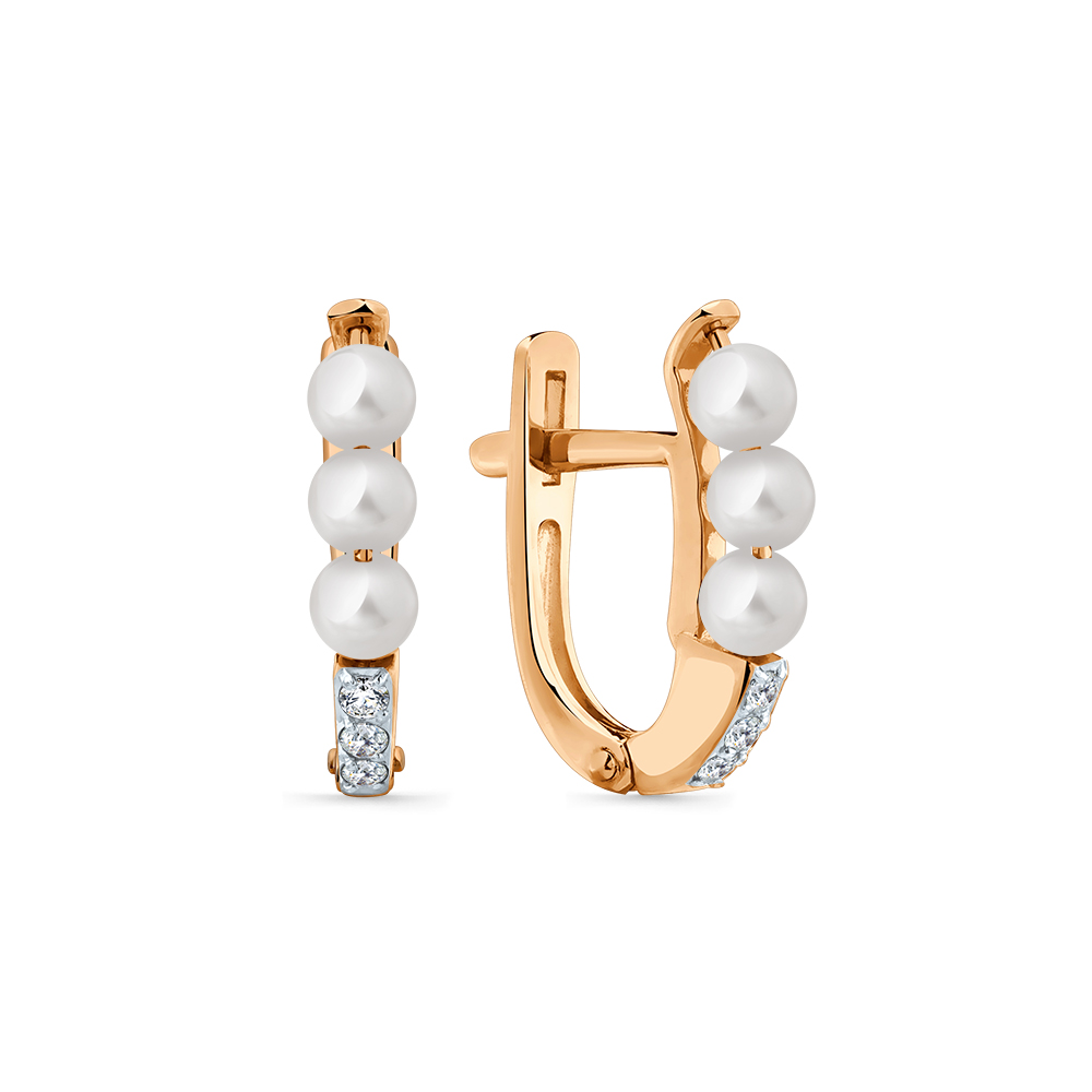 Серьги из золота 585 пробы с жемчугом и бриллиантами