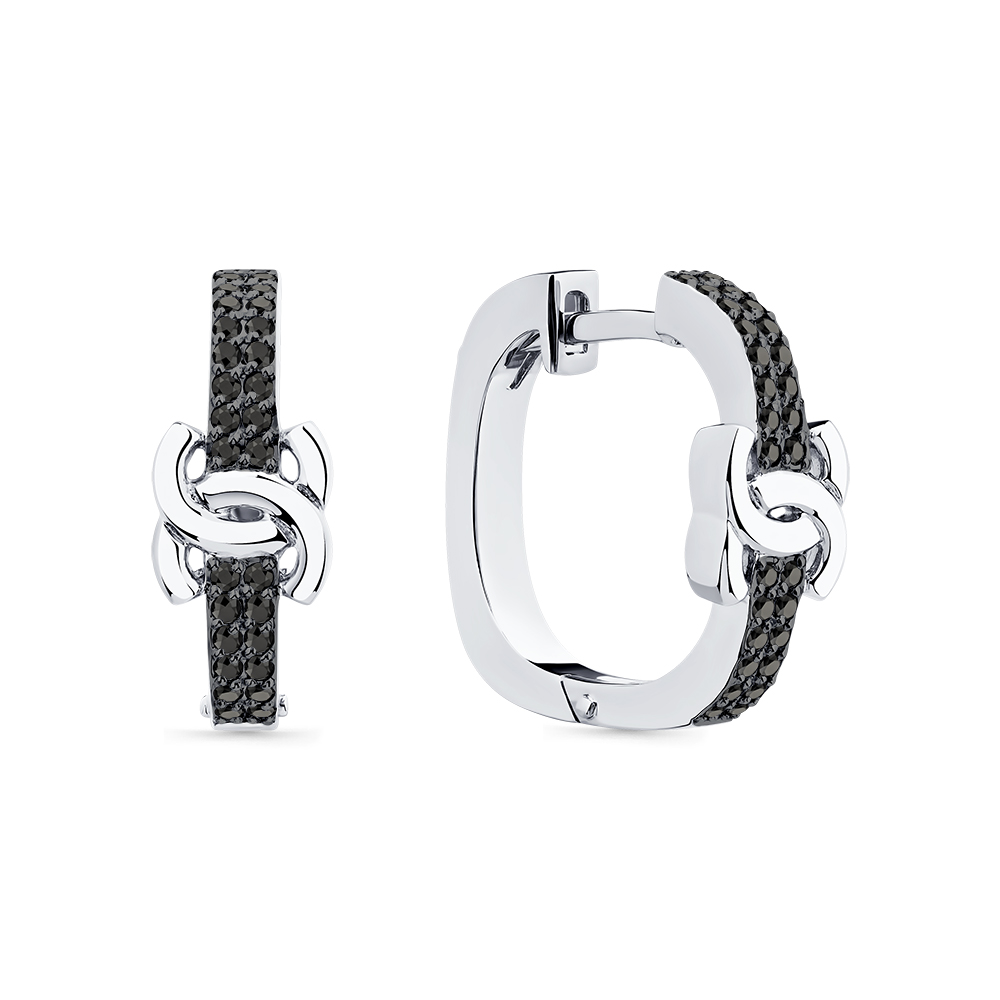 Серьги из белого золота 585 пробы с черными бриллиантами