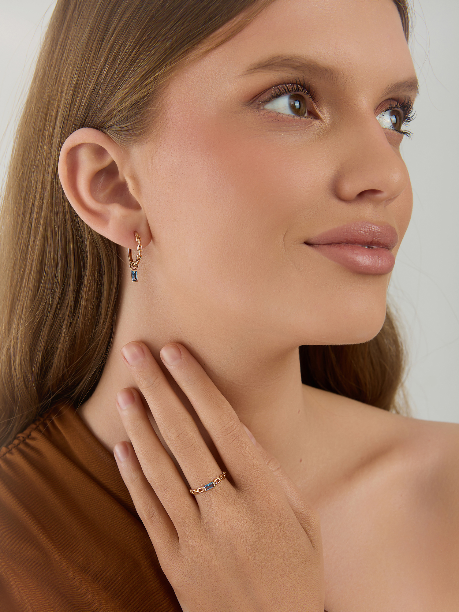 Серьги из золота 585 пробы с ситаллами цвета топаз London Blue