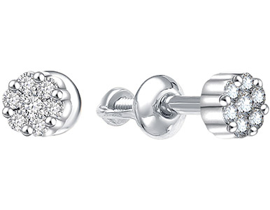 Серьги пусеты из белого золота 585 пробы с бриллиантами