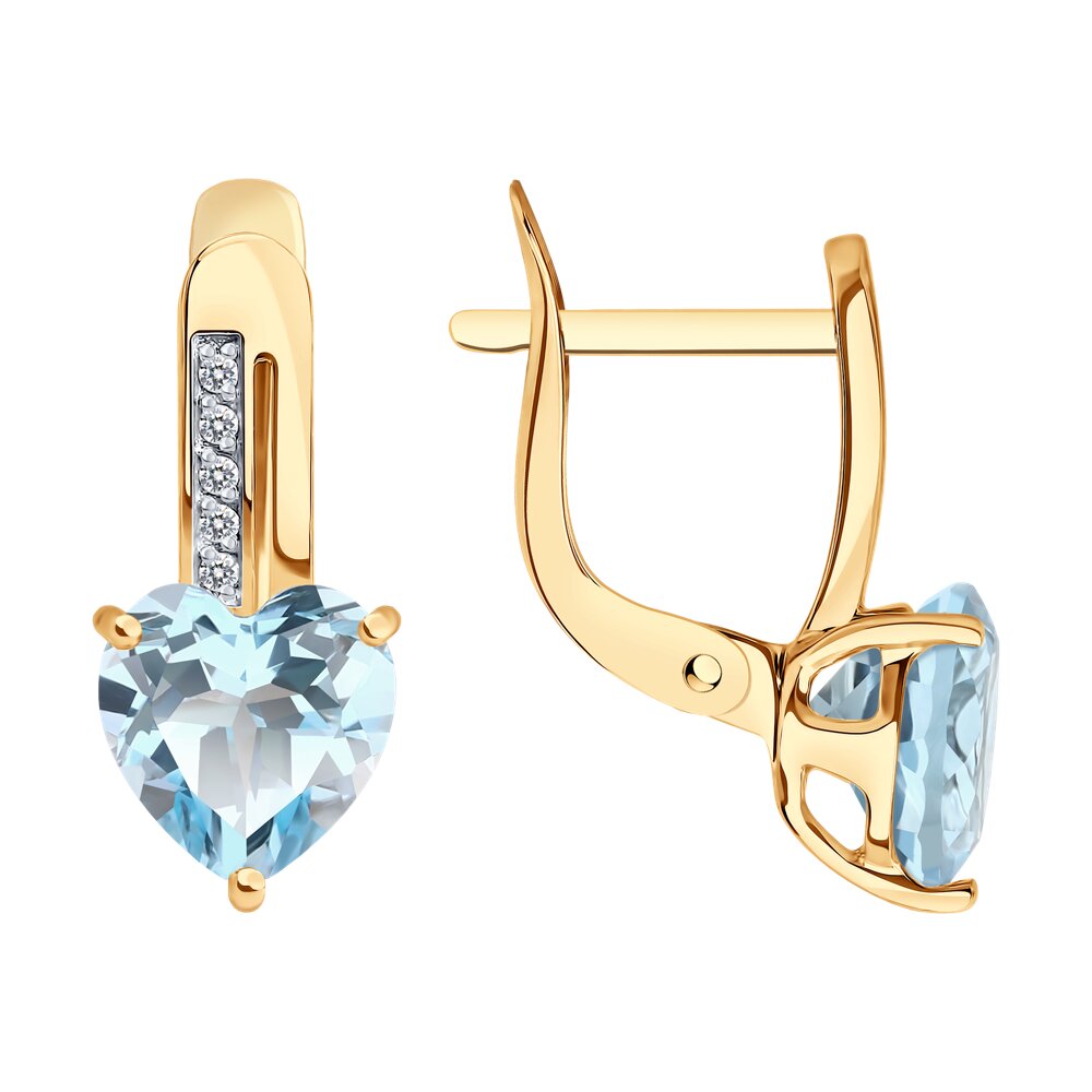 Серьги из золота 585 пробы с топазами и бриллиантами