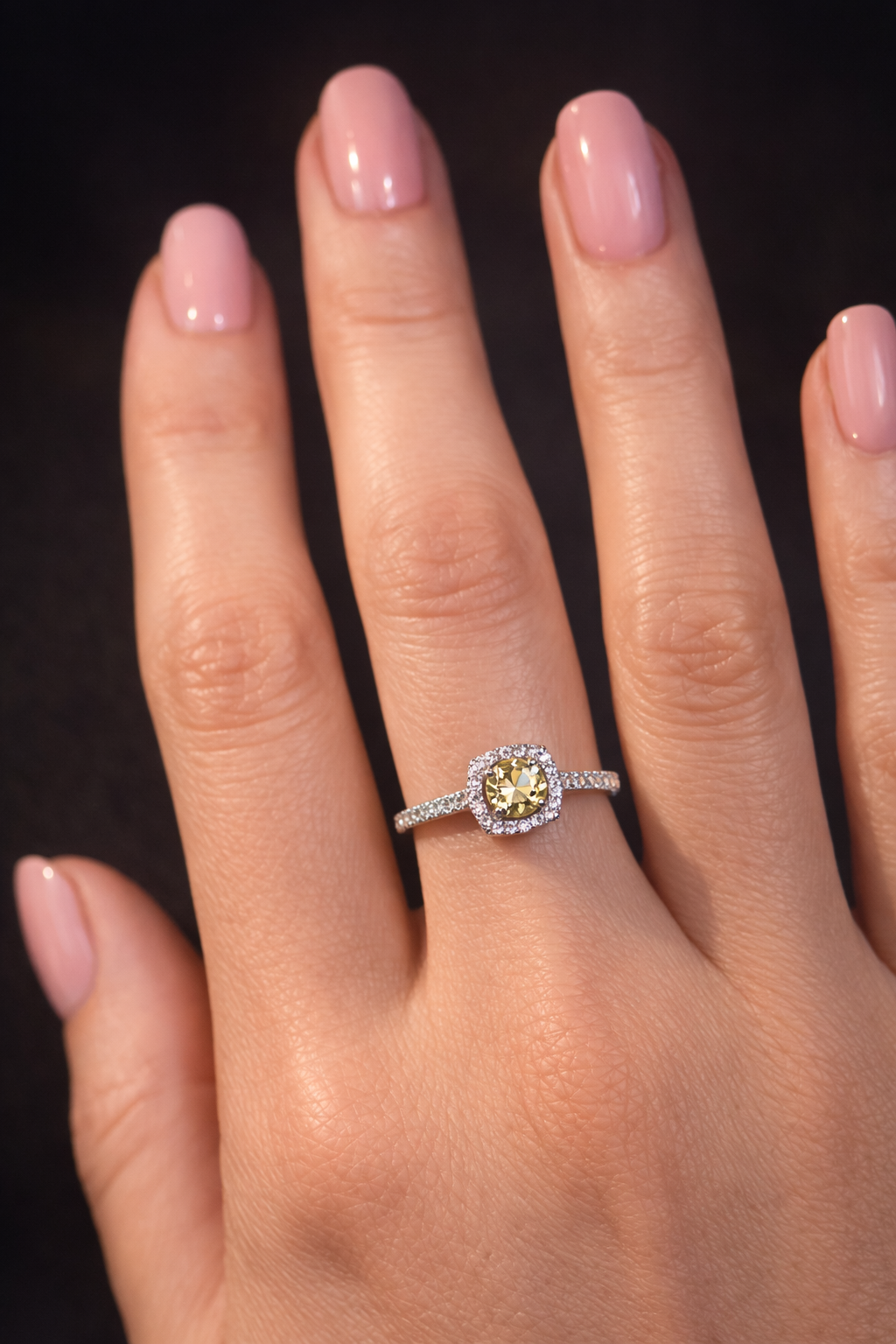Кольцо из белого золота 585 пробы с цветными фианитами