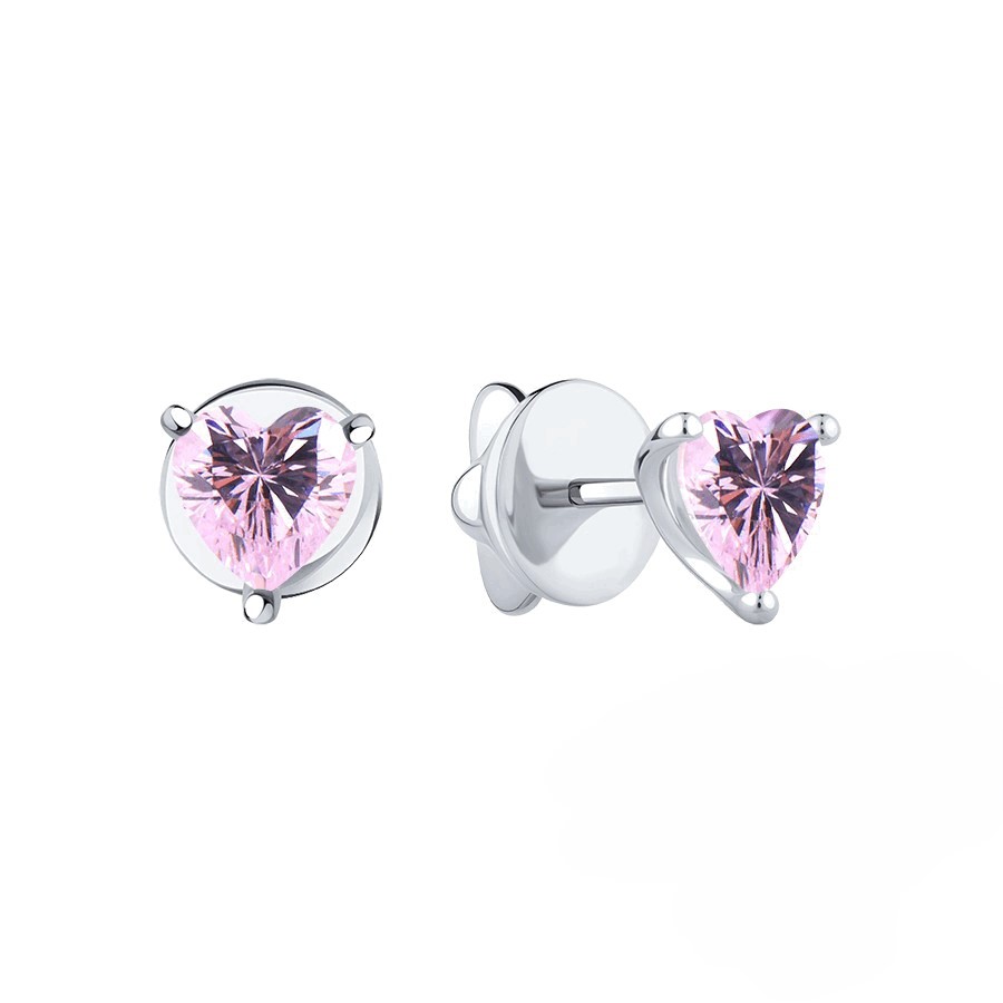 Серьги пусеты из белого золота 585 пробы с цветными фианитами