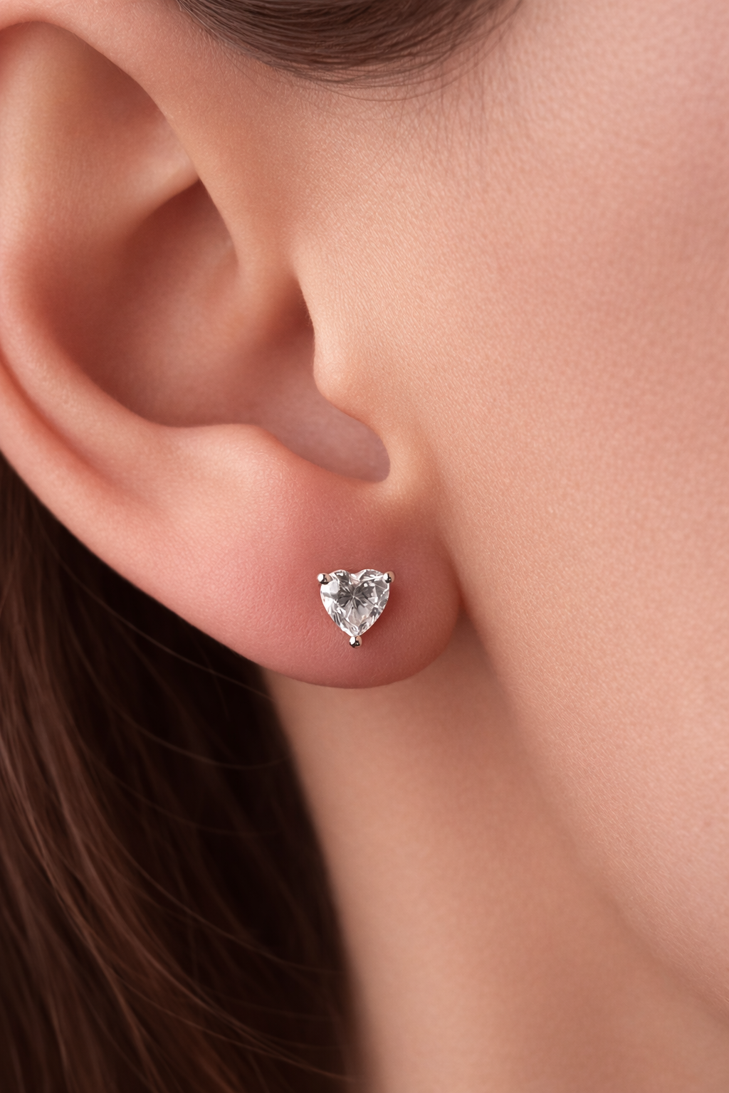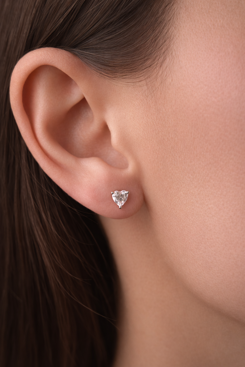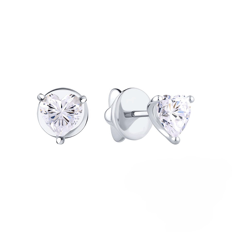Серьги пусеты из белого золота 585 пробы с фианитами