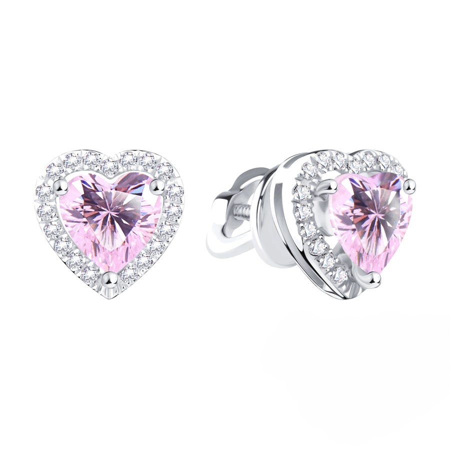 Серьги пусеты из белого золота 585 пробы с цветными фианитами