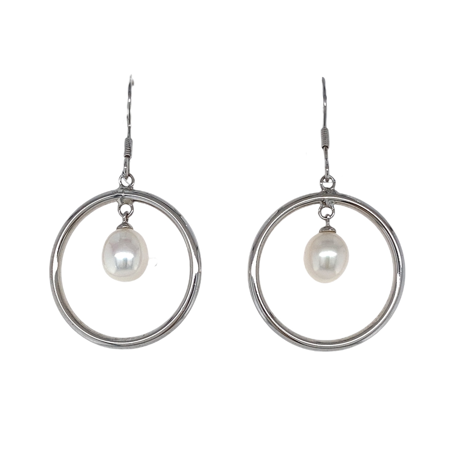 Серьги петельки из серебра 925 пробы с жемчугом