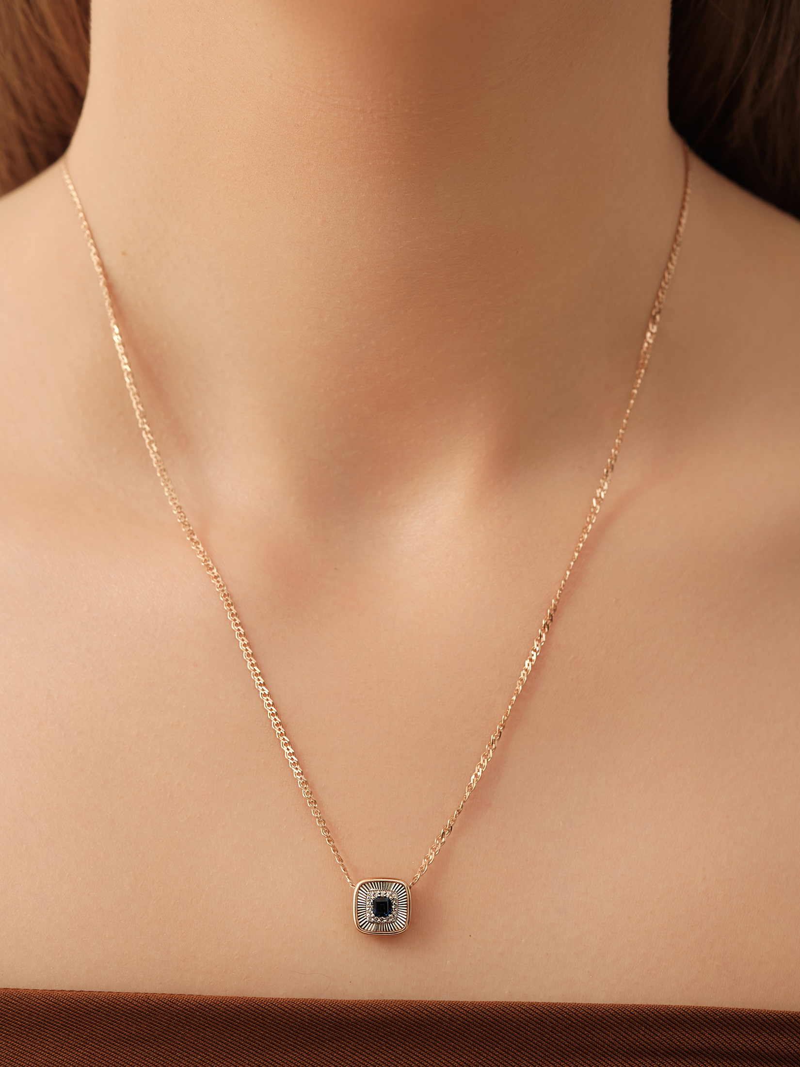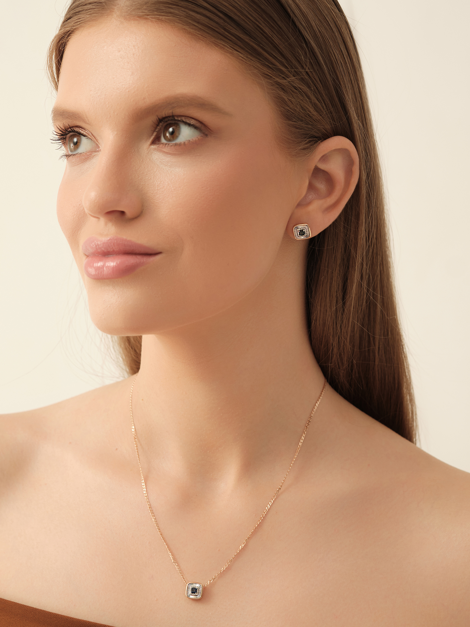 Подвеска бегунок из золота 585 пробы с сапфиром и бриллиантами