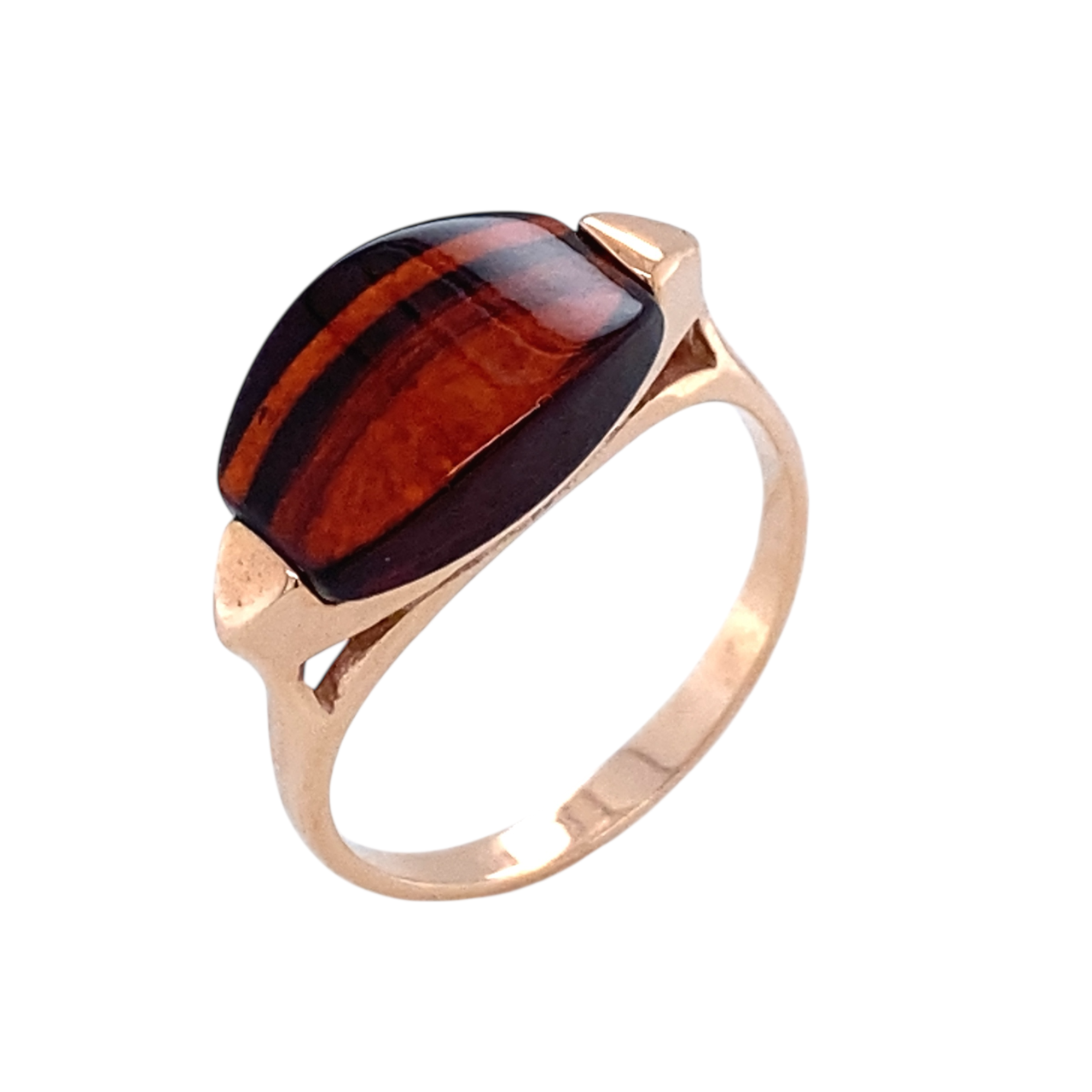 Кольцо из серебра 925 пробы с позолотой, с янтарем