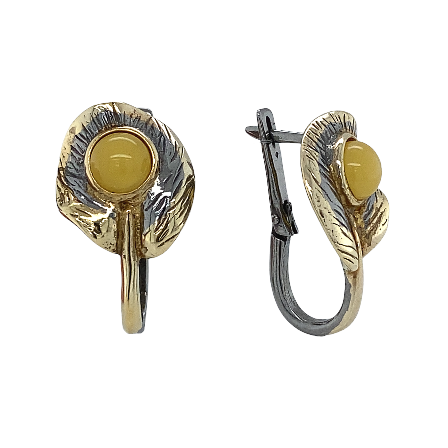 Серьги из серебра 925 пробы с позолотой, с белым янтарем