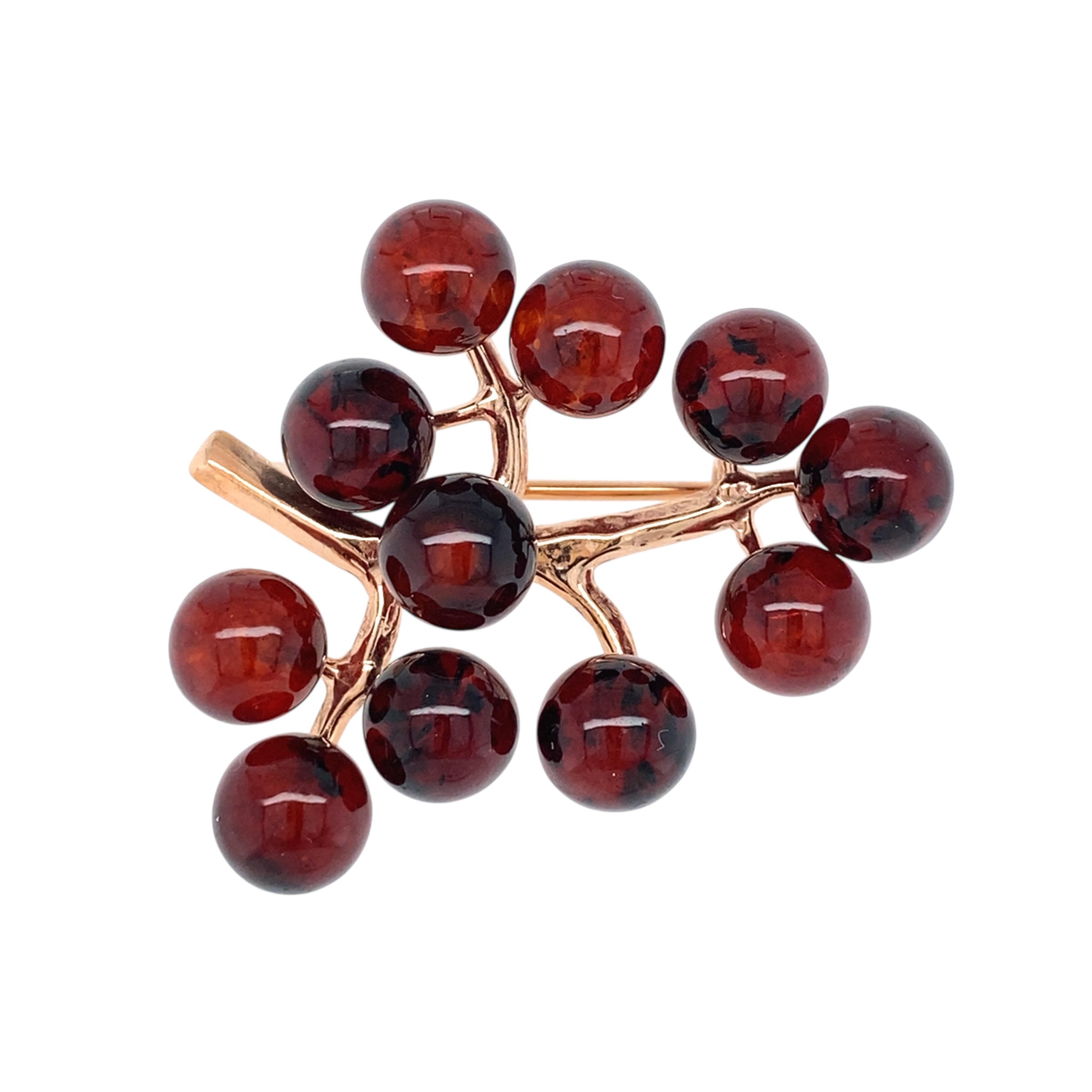 Брошь из серебра 925 пробы с позолотой, с янтарем
