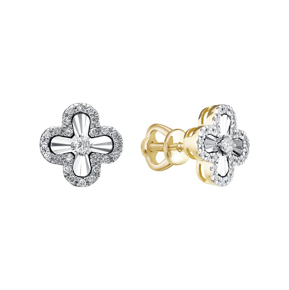 Серьги пусеты из желтого золота 585 пробы с бриллиантами