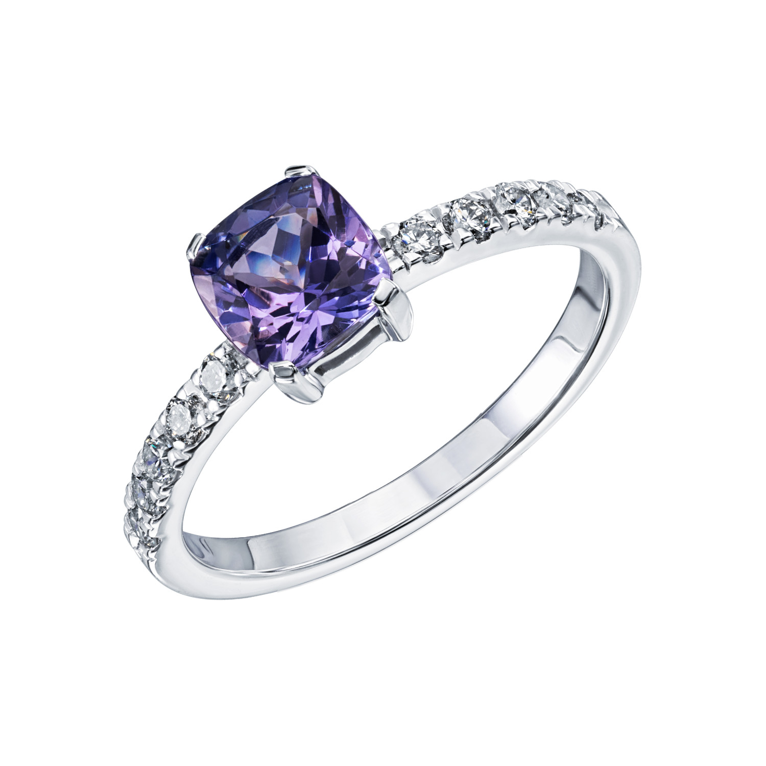 Кольцо из белого золота 585 пробы с танзанитами и бриллиантами