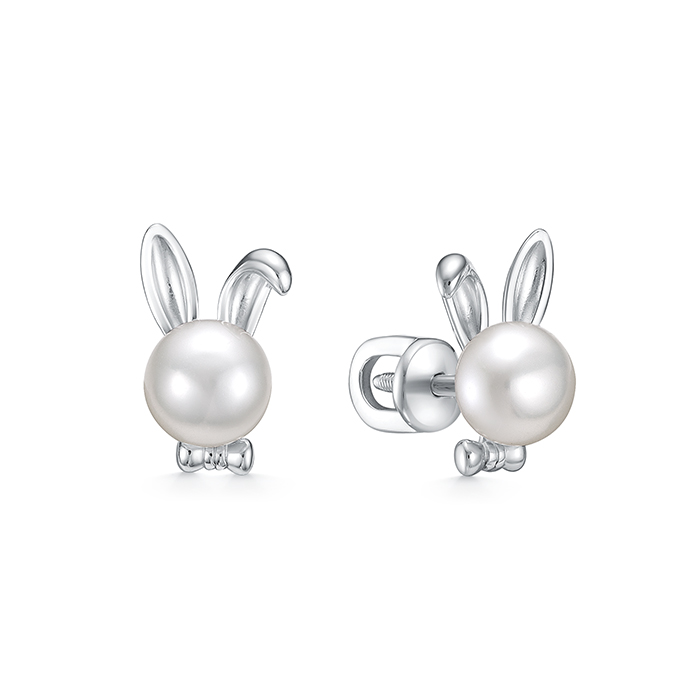Серьги пусеты из серебра 925 пробы с жемчугом