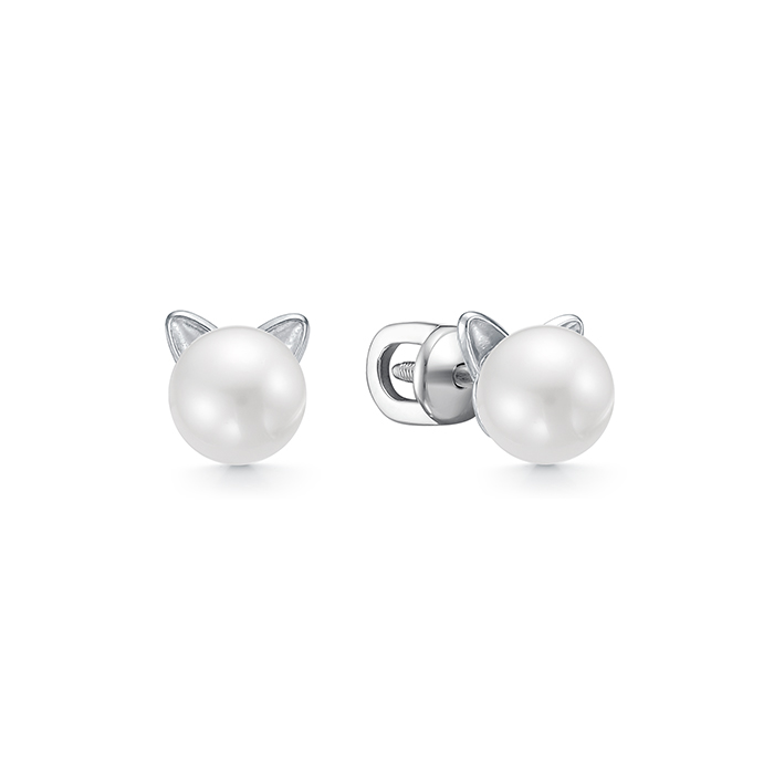 Серьги пусеты из серебра 925 пробы с жемчугом