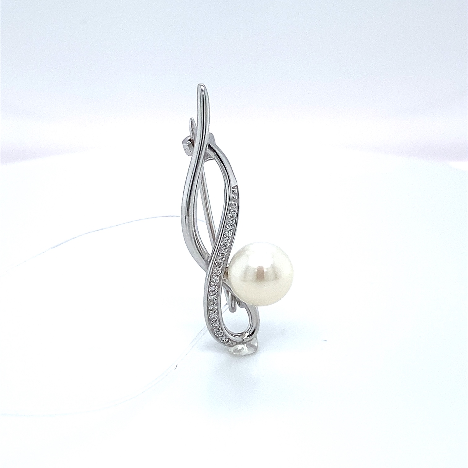 Брошь из серебра 925 пробы с жемчугом и фианитами