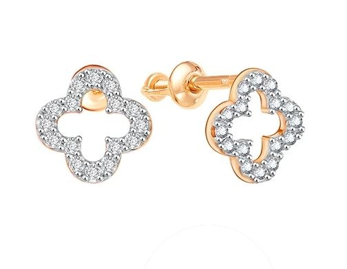 Серьги пусеты из золота 585 пробы с фианитами